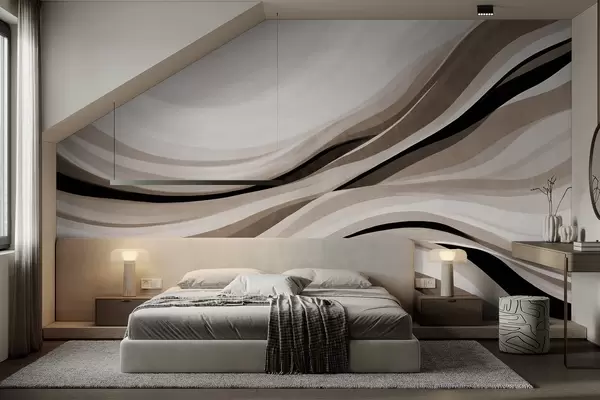 Fototapeter Abstrakte bølgelinjer i beige og svart mot en lys bakgrunn, strukturert kunst Nr. w09748