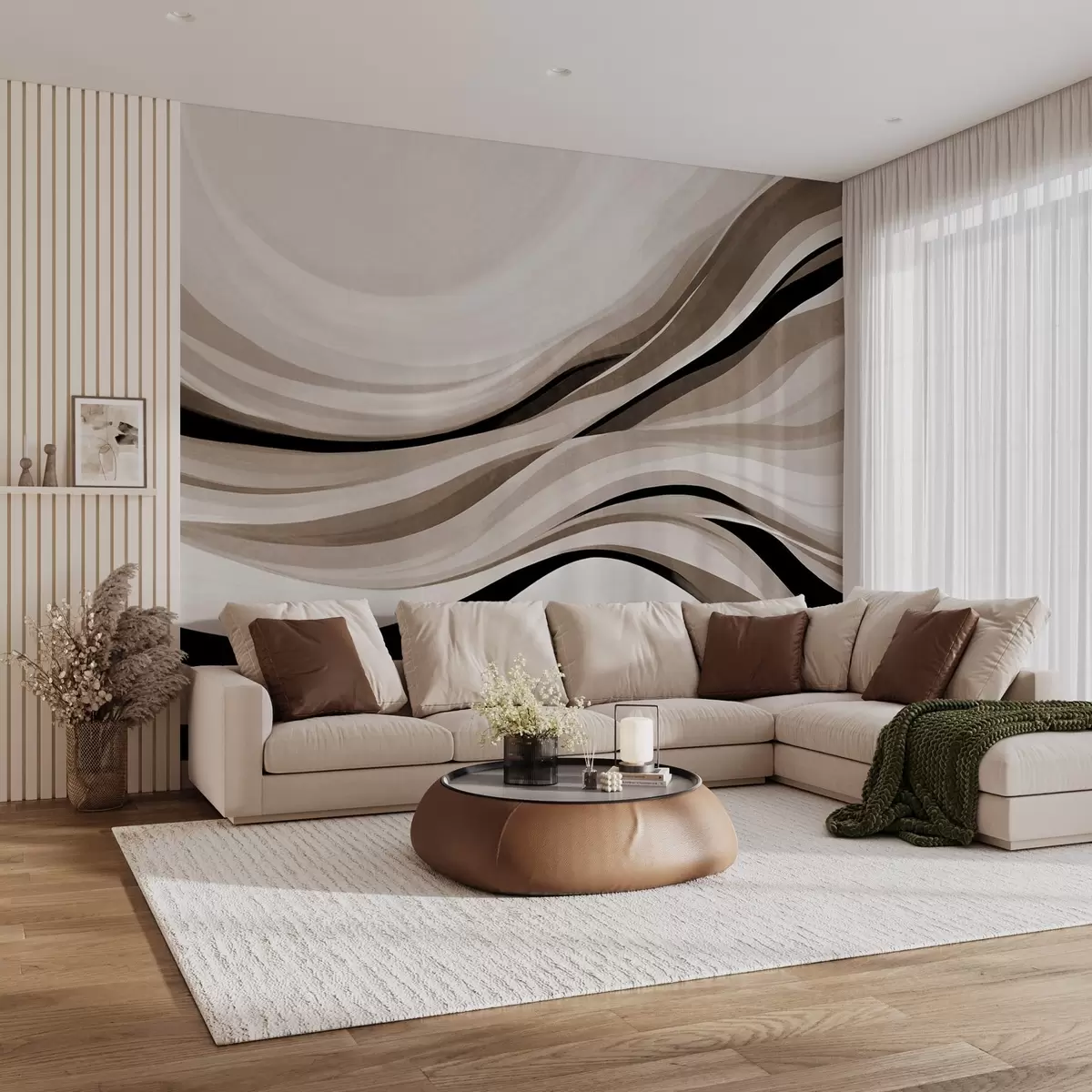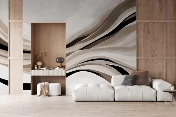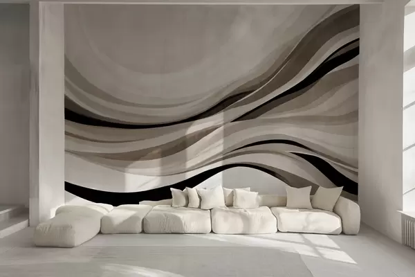 Fototapeter Abstrakte bølgelinjer i beige og svart mot en lys bakgrunn, strukturert kunst Nr. w09748