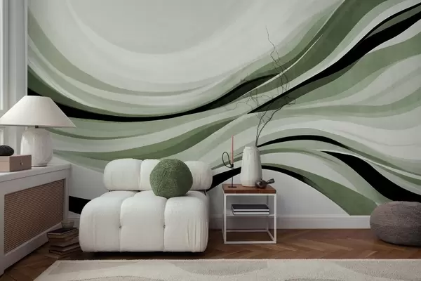 Fototapeter Abstrakte bølgelinjer i nyanser av grønt og svart mot en lys bakgrunn, strukturert kunst Nr. w09748v1