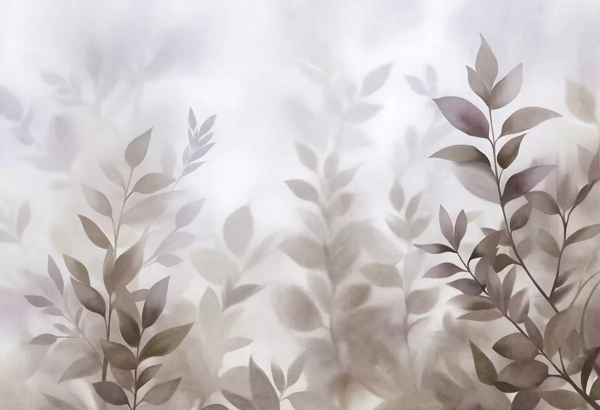 Fototapeter Delikate grener med dempede brune og beige blader, akvarellmaleri-stil, strukturert kunst Nr. w09750