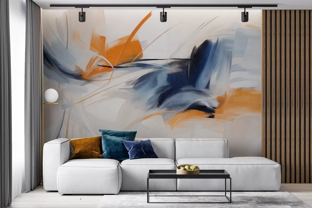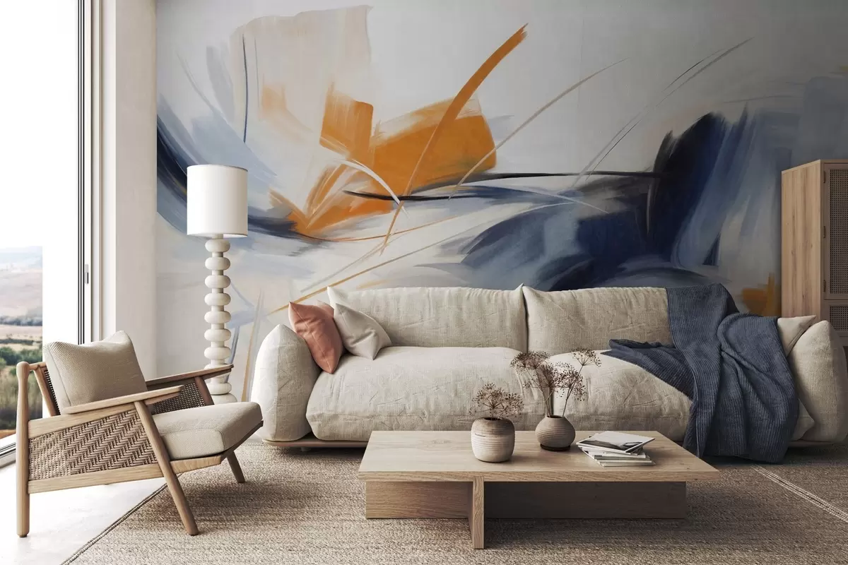 Fototapeter Abstrakt malestil med oransje og blå teksturerte penselstrøk Nr. w09755