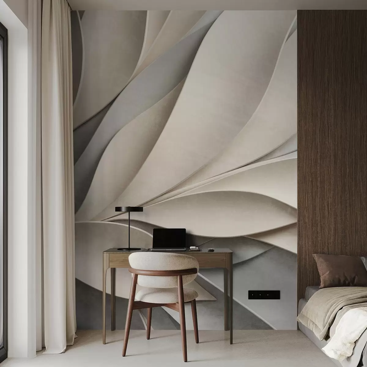 Fototapeter Abstrakte blader i beige og grått, strukturert moderne kunst Nr. w09769