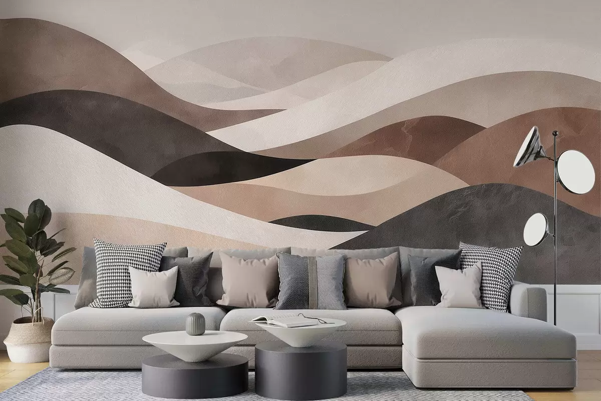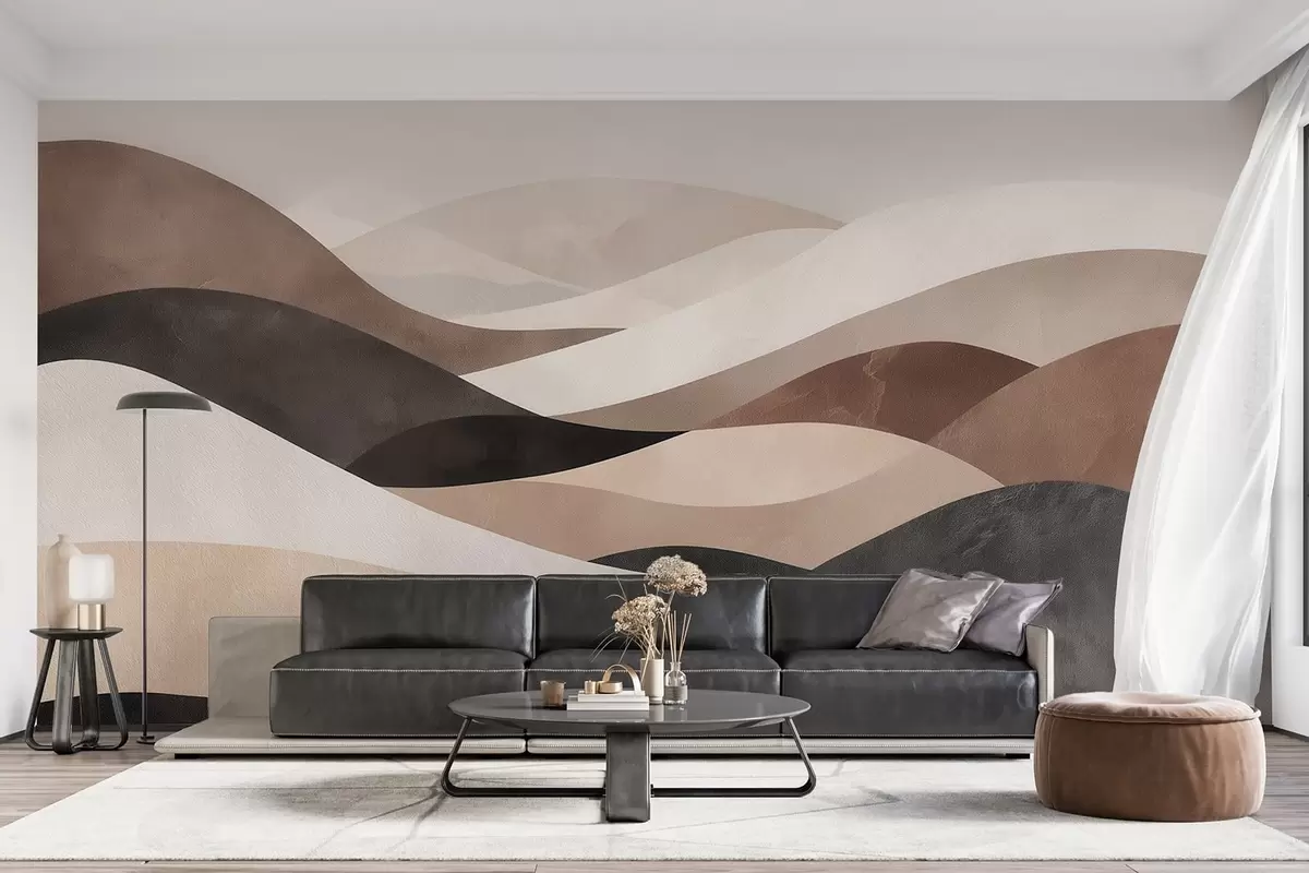 Fototapeter Abstrakte bølger i sandbeige nyanser Nr. w09792