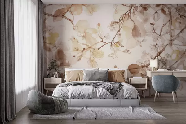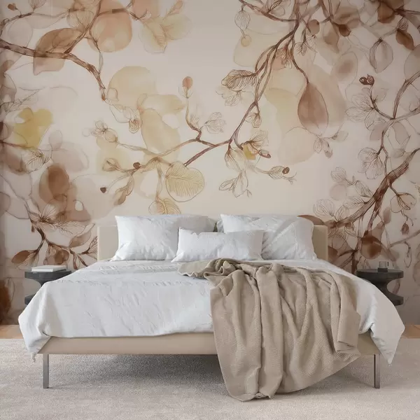 Fototapeter Luftige, hengende grener i beige nyanser i akvarellstil Nr. w09795
