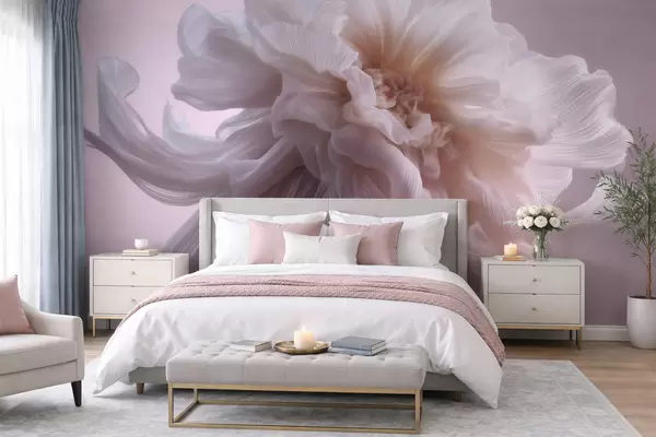 Fototapeter Voluminøs silkeblomst i myke rosa- og beigetoner Nr. w09809