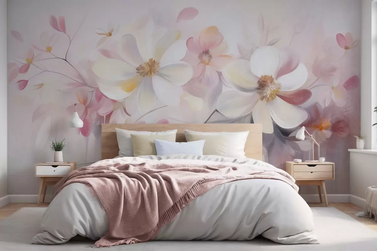 Fototapeter Hvite og rosa blomster med delikate kronblader, strukturert kunst, abstrakt, myk bakgrunn Nr. w09811