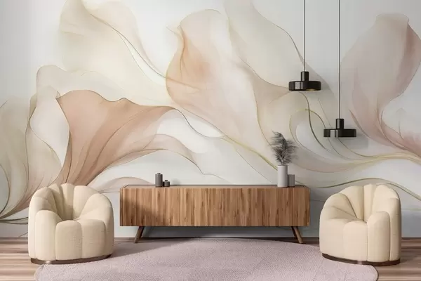 Fototapeter En abstrakt, flytende tekstur i fargenyanser av fersken og krem med delikate linjer Nr. w09815
