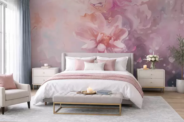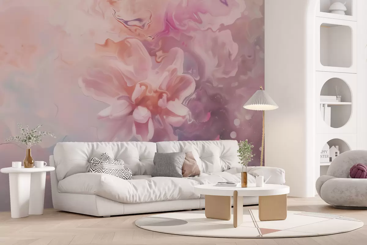 Fototapeter En abstrakt komposisjon med en blomst og myke rosa fargetoner i akvarellstil Nr. w09859