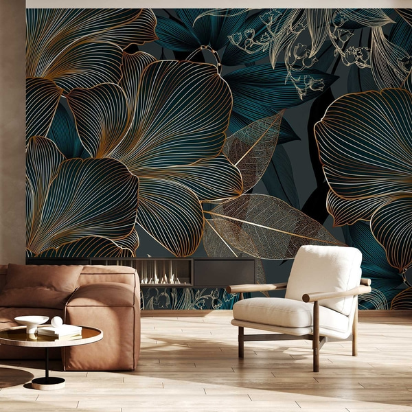 Mørkt botanisk mønster med blomster og blader