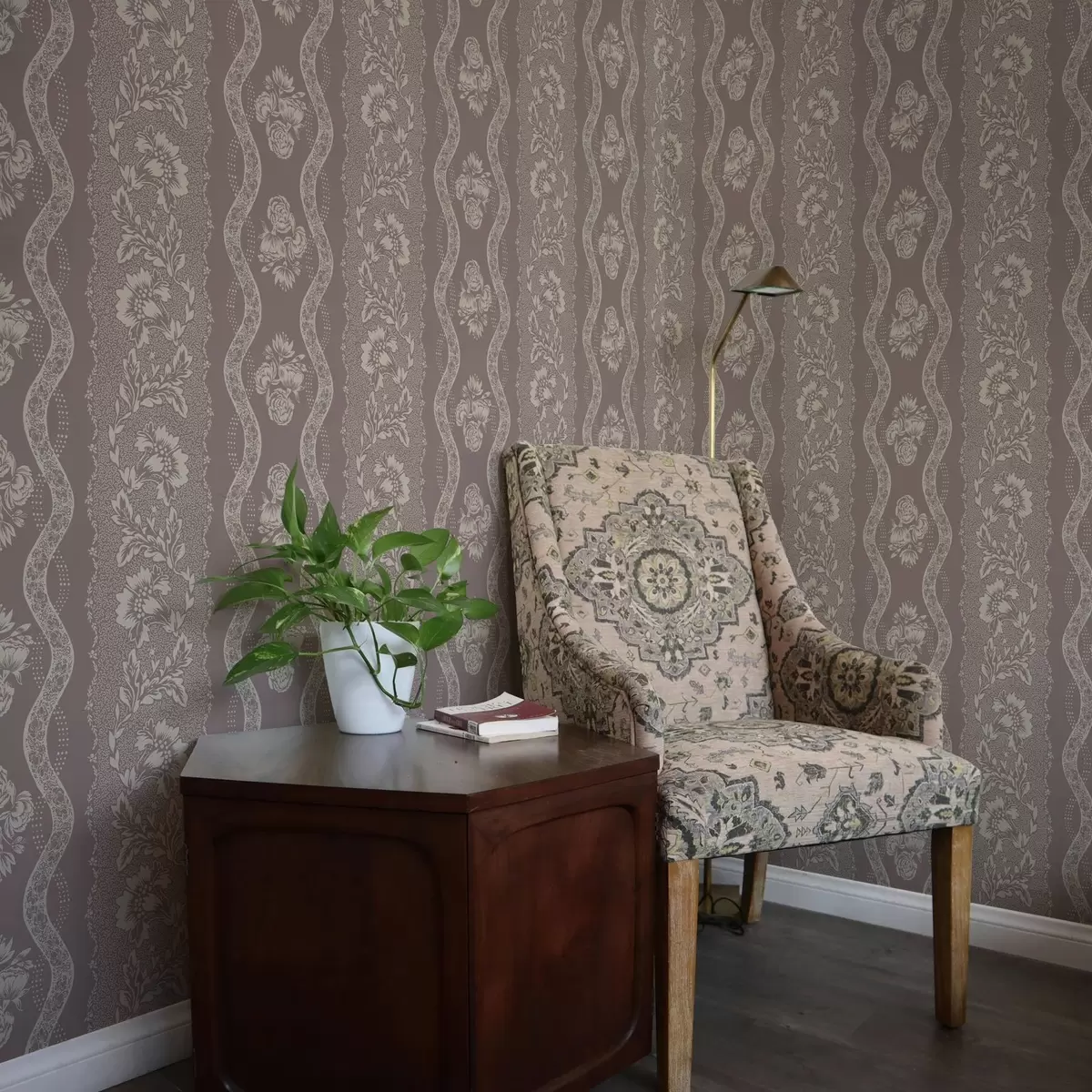 Tapet Mildt geometrisk ornament med blomster og buede linjer Nr. a00033