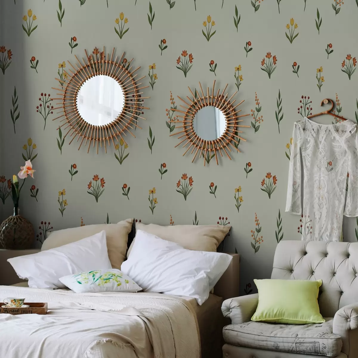 Tapet Minimalistiske blomster på lysegrønn bakgrunn Nr. a00037