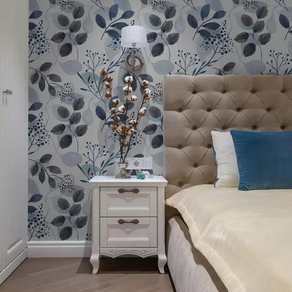 Tapet Høstløv i akvarellstil i blå toner Nr. a00048v2