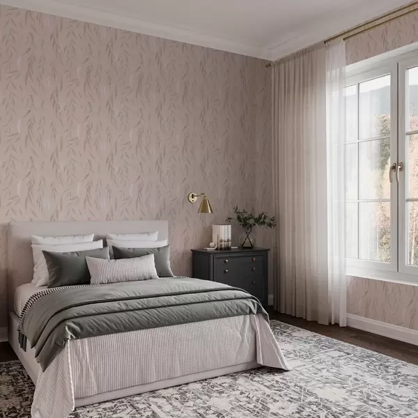 Tapet Hengende grener med blader på beige bakgrunn Nr. a00095v1