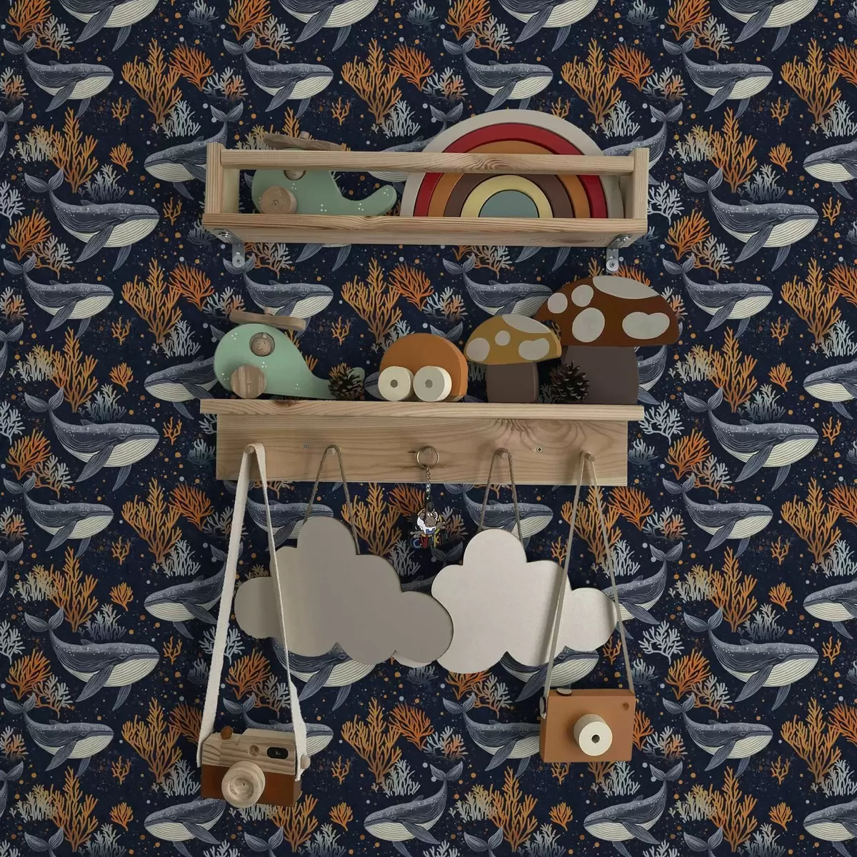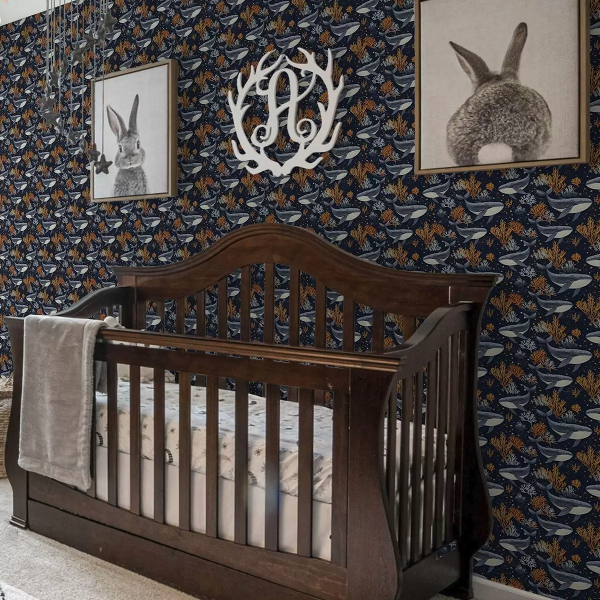 Tapet Hvaler og koraller på en mørk bakgrunn Nr. a00116