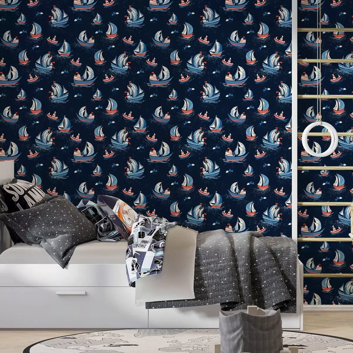 Tapet Skip på blå bakgrunn Nr. a00126v1