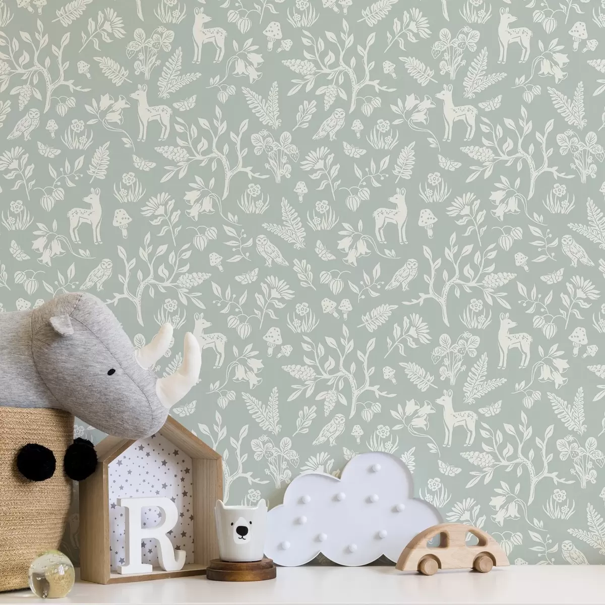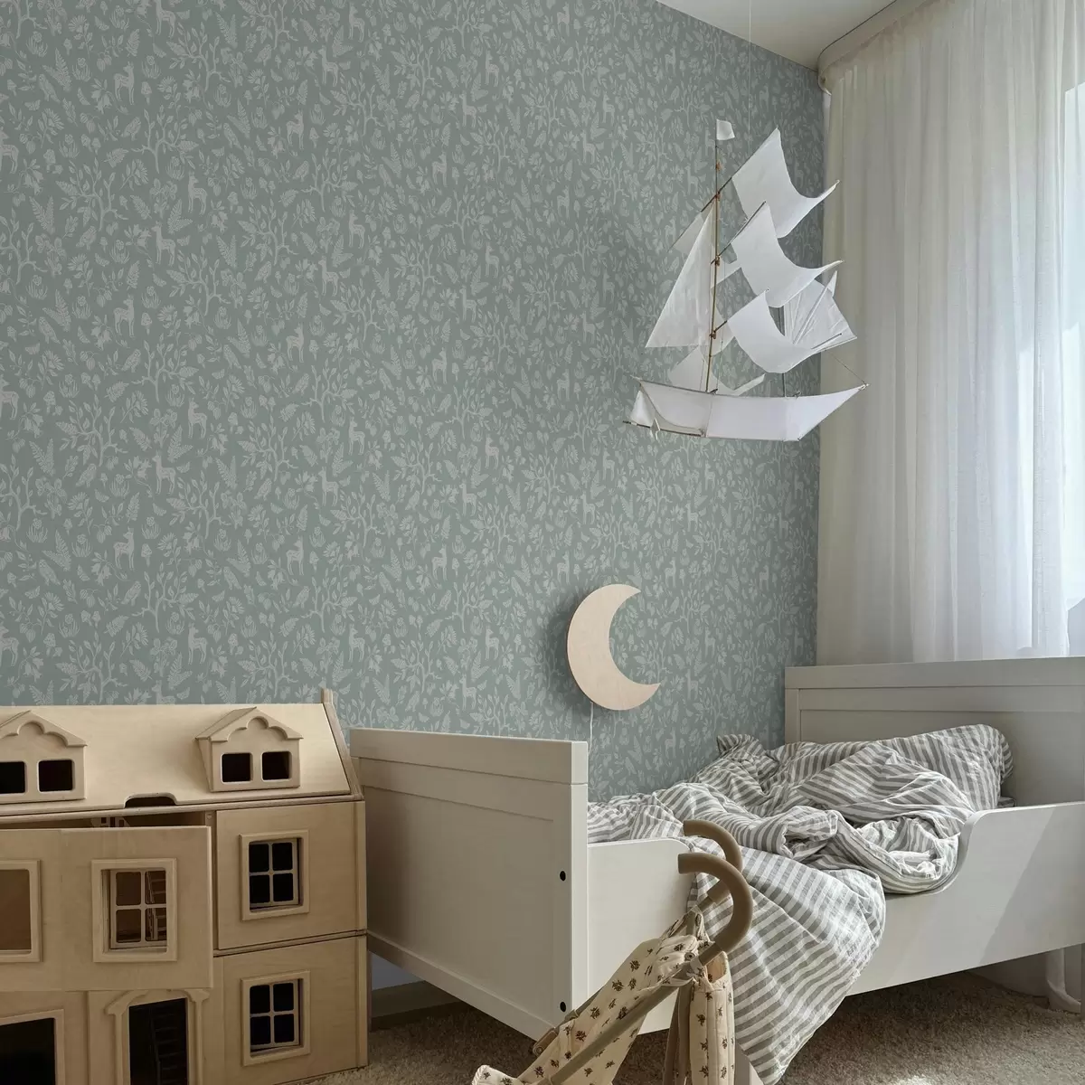 Tapet Skandinaviske dyr og planter på en mintfarget bakgrunn Nr. a00149