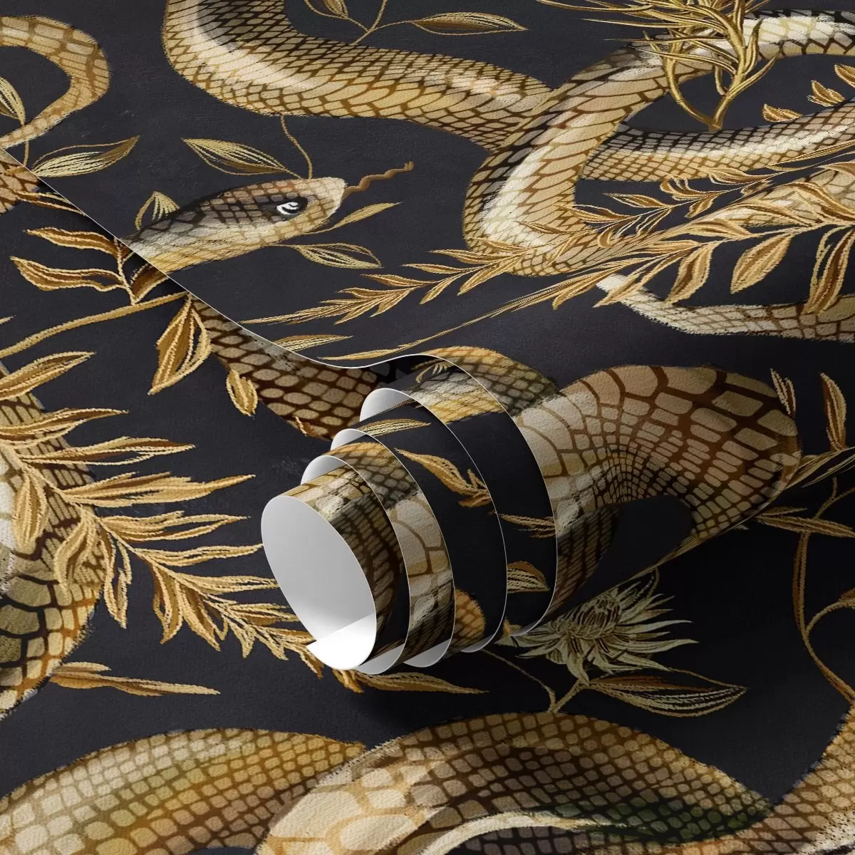 Tapet Slanger og blomster på en mørk bakgrunn Nr. a00158
