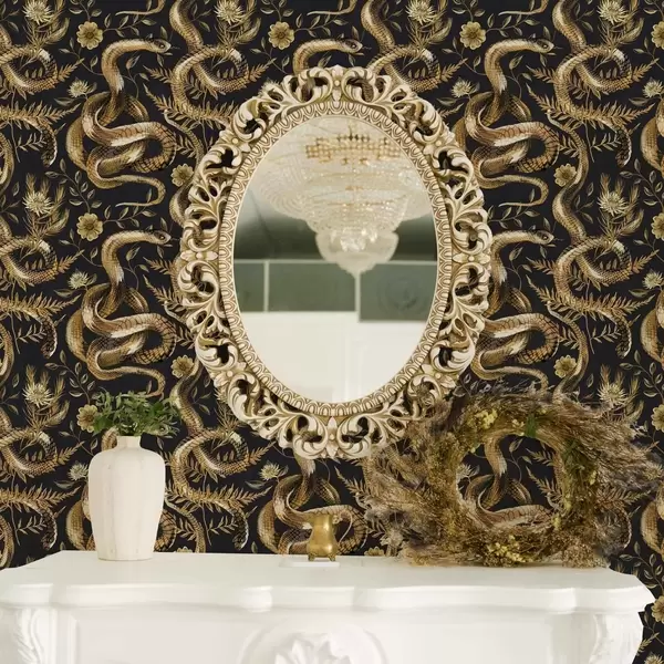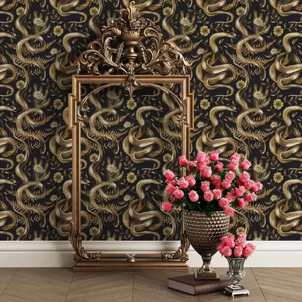 Tapet Slanger og blomster på en mørk bakgrunn Nr. a00158