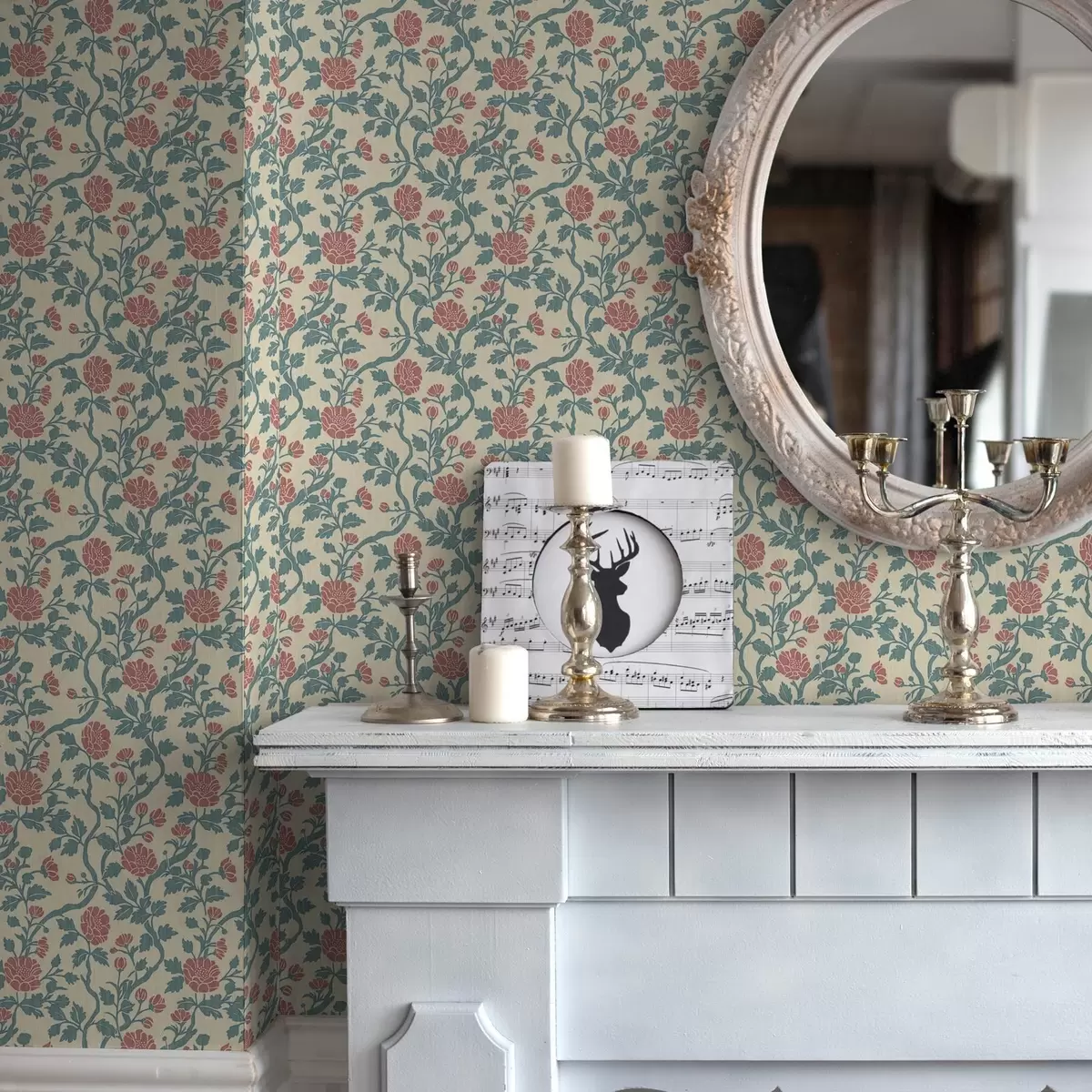 Tapet Retromønster med blomster i rødt og grønt Nr. a00250