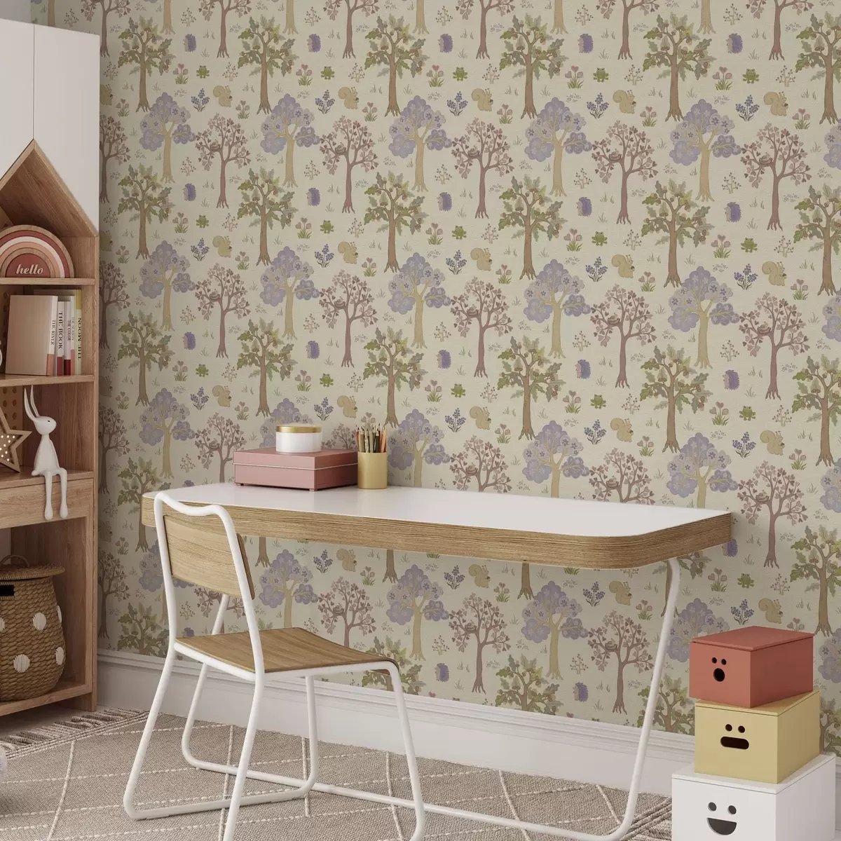 Tapet Eventyrskog med dyr i barnestil Nr. a00264