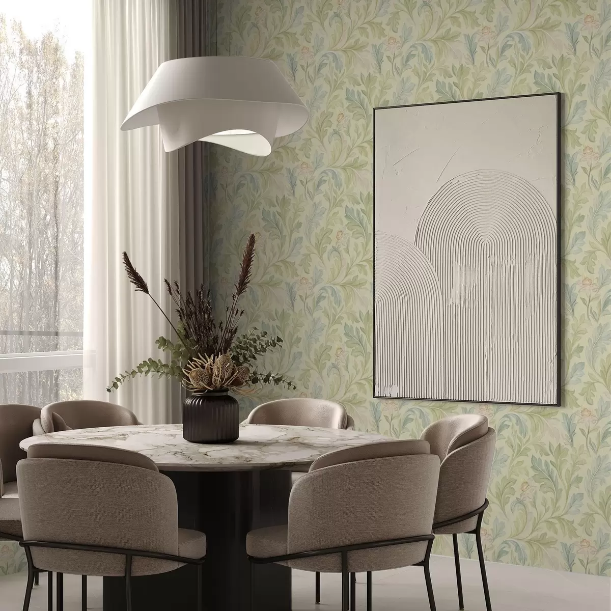 Tapet Vintage blader på gulaktig bakgrunn, myke farger Nr. a00277v1