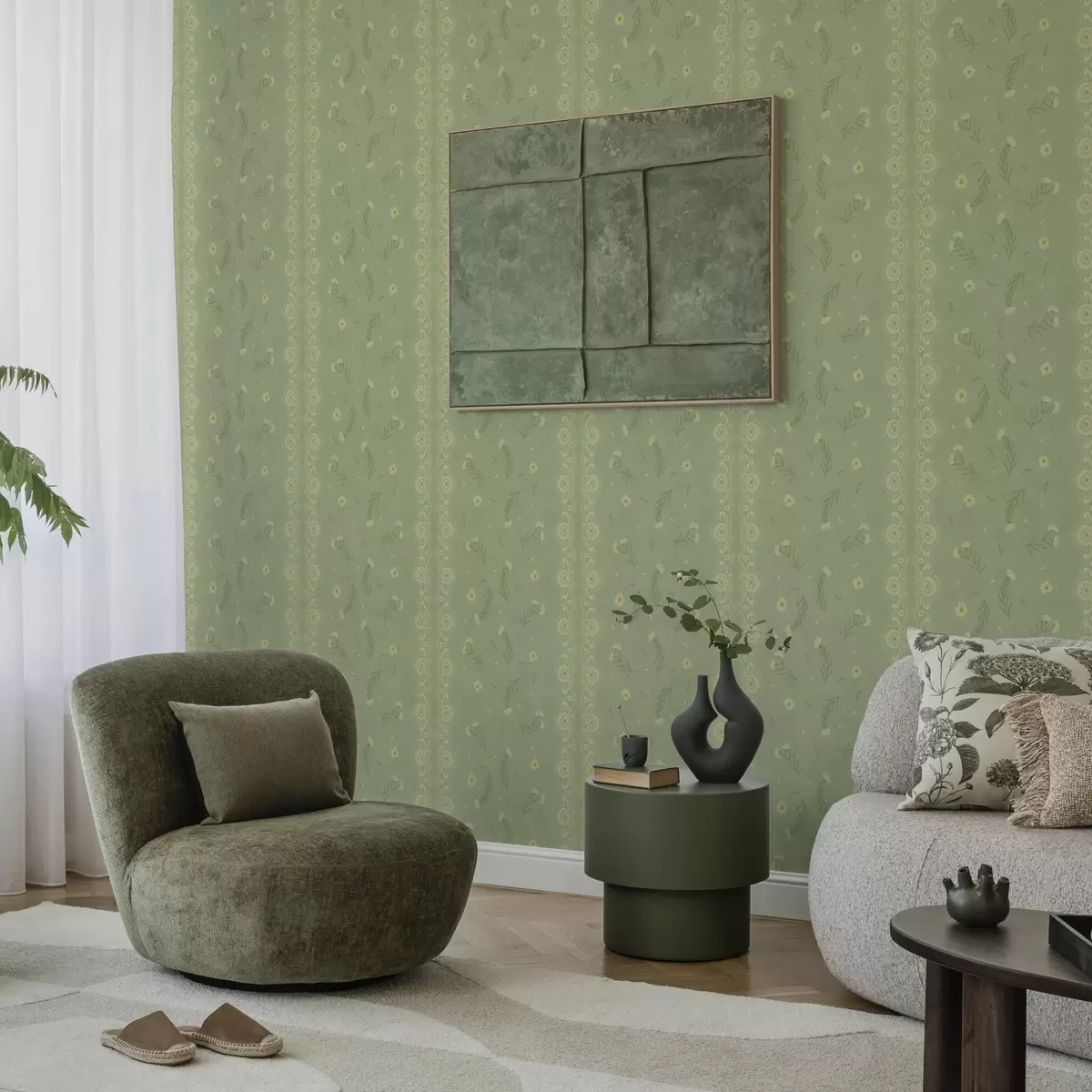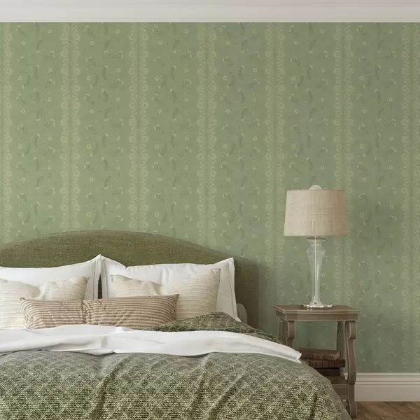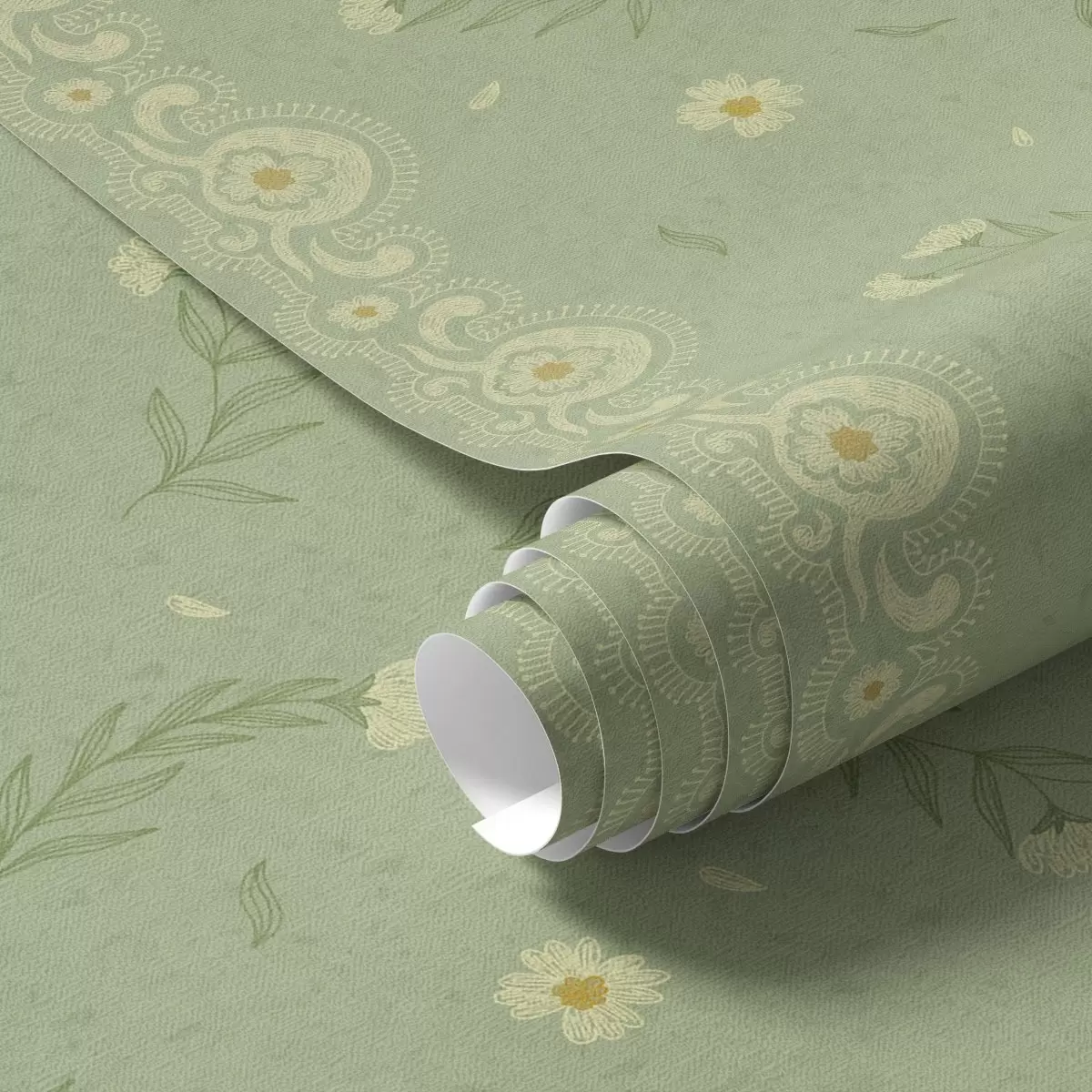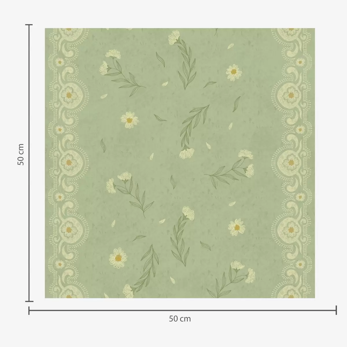Tapet Grønn bakgrunn med tusenfryd og blondekant Nr. a00291