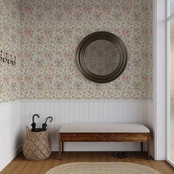 Tapet Tusenfryd, peoner, liljer og blader i delikate farger Nr. a00299