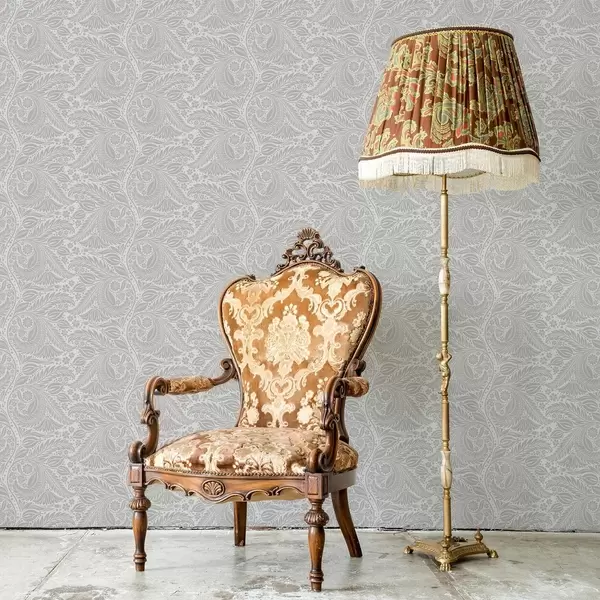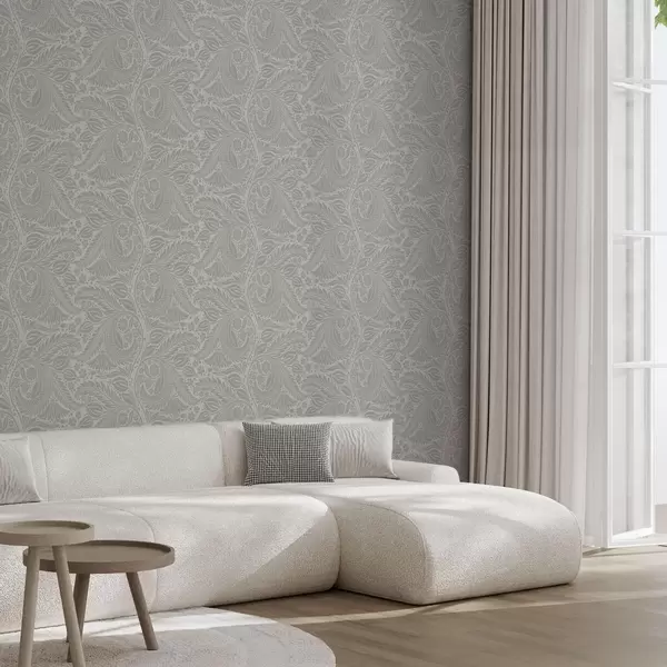 Tapet Grå folklorestilisering med blader og blomster Nr. a00301
