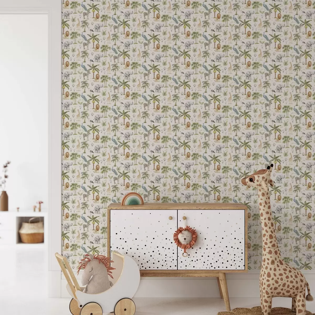 Tapet Afrikanske dyr blant palmer og eksotiske planter Nr. a00321