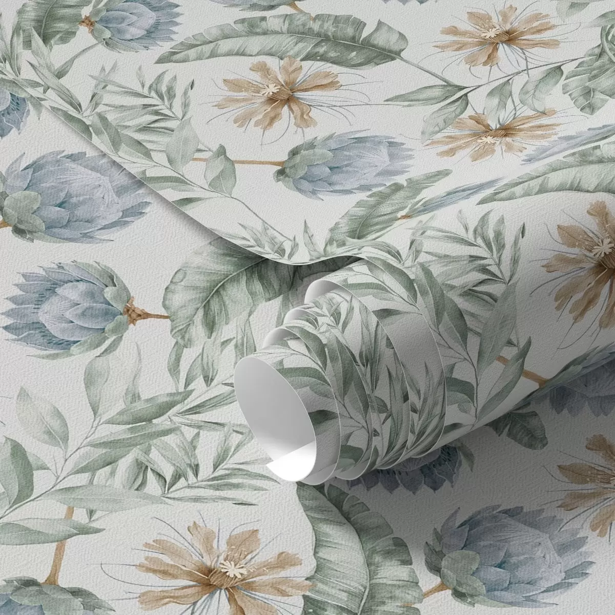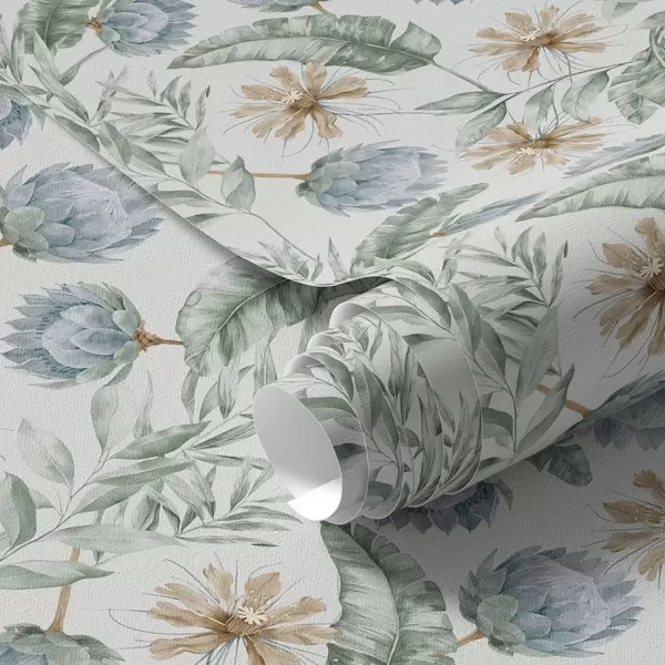 Tapet Botanisk mønster med artisjokker og tropiske blader Nr. a00340