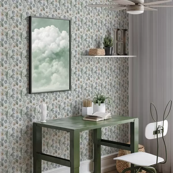 Tapet Botanisk mønster med artisjokker og tropiske blader Nr. a00340
