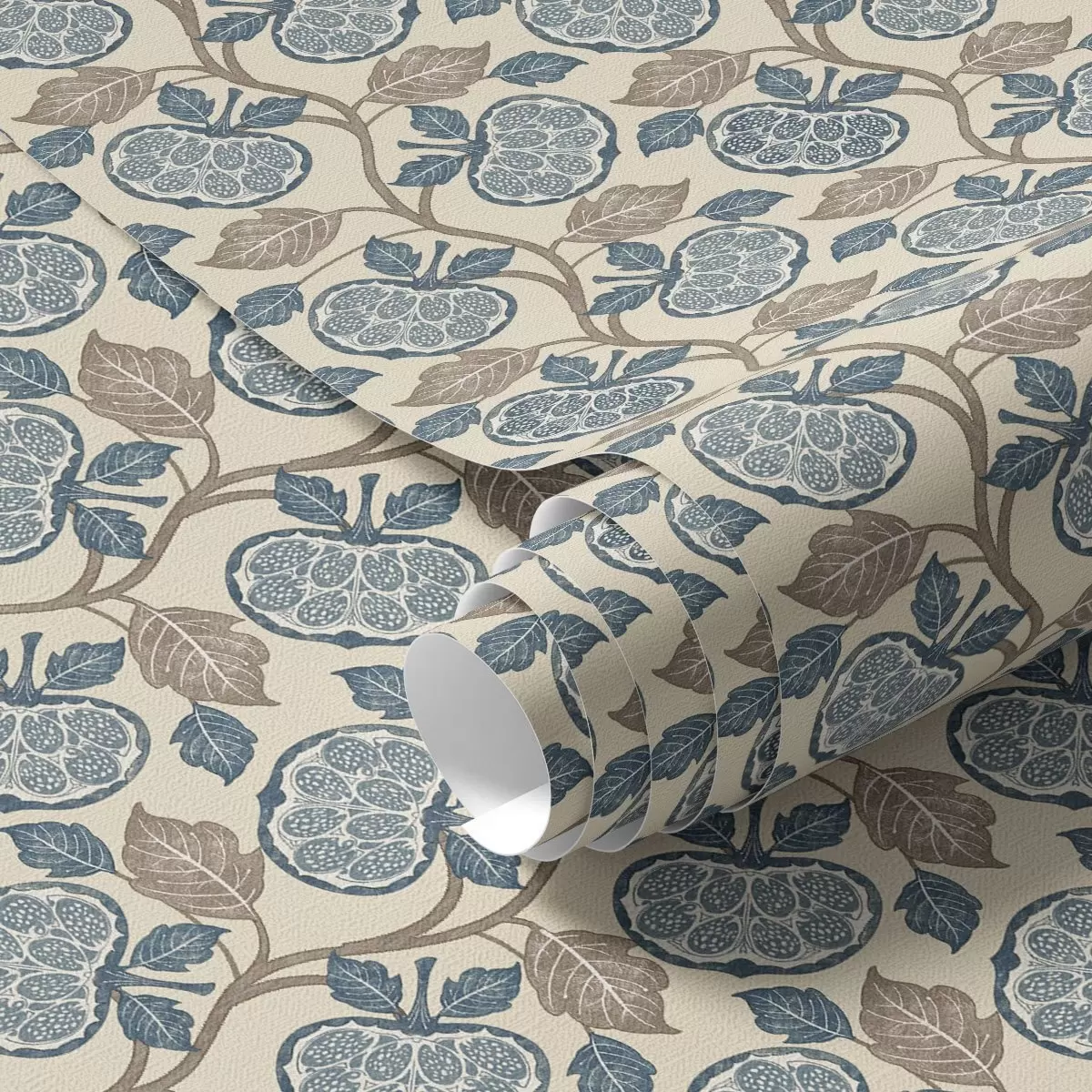 Tapet Symmetrisk mønster med blå og beige elementer Nr. a00360