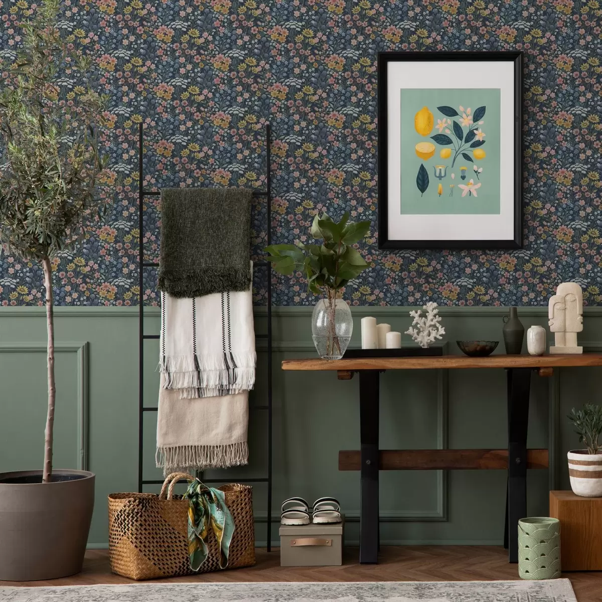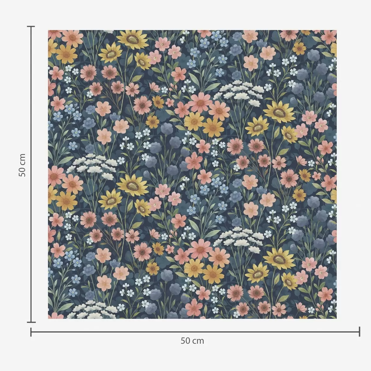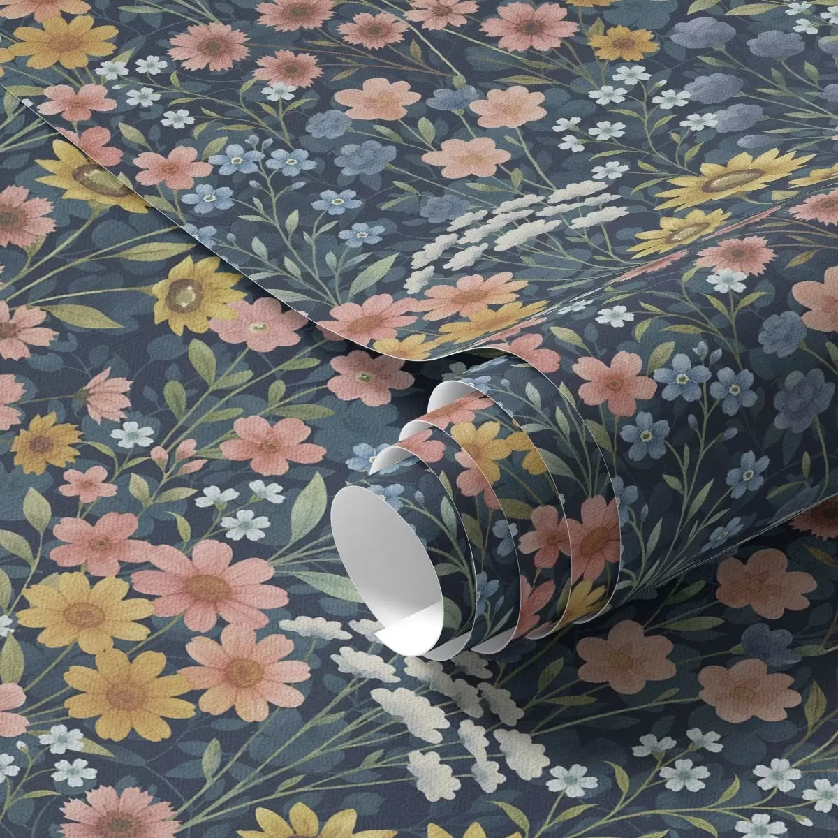 Tapet Fargerike akvarellblomster på marineblå bunn Nr. a00381