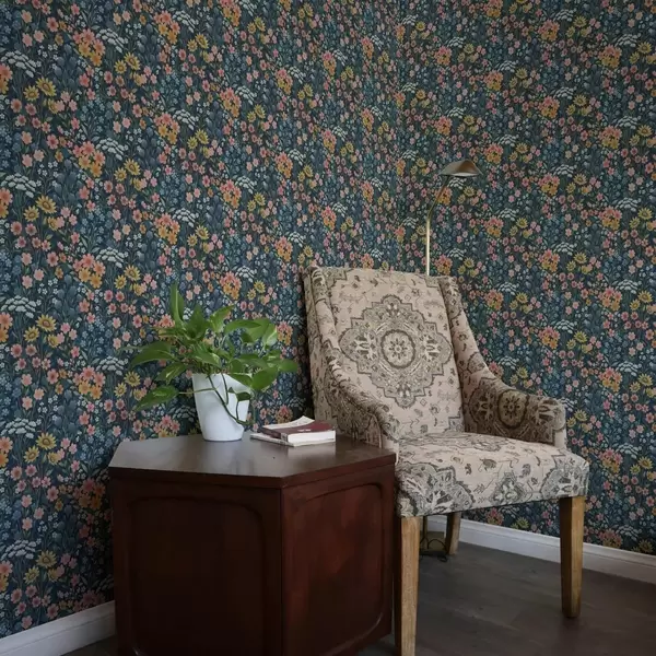 Tapet Fargerike akvarellblomster på marineblå bunn Nr. a00381
