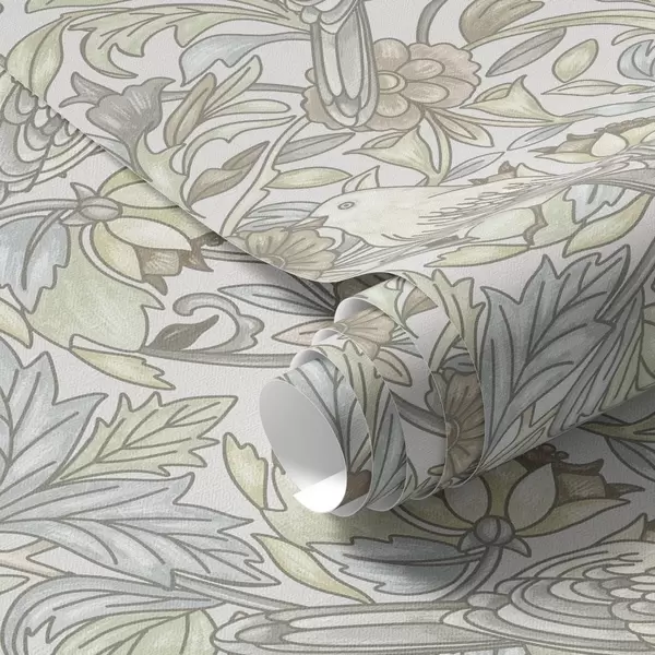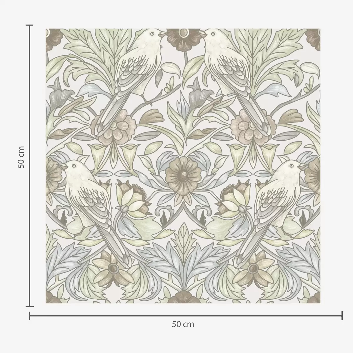Tapet Art Nouveau-fugler og pastellstiliserte blomster Nr. a00385