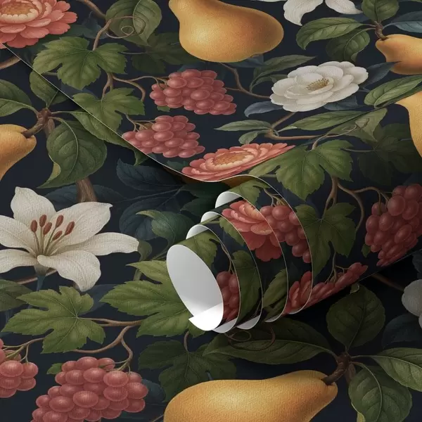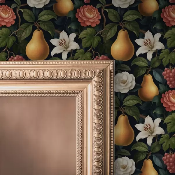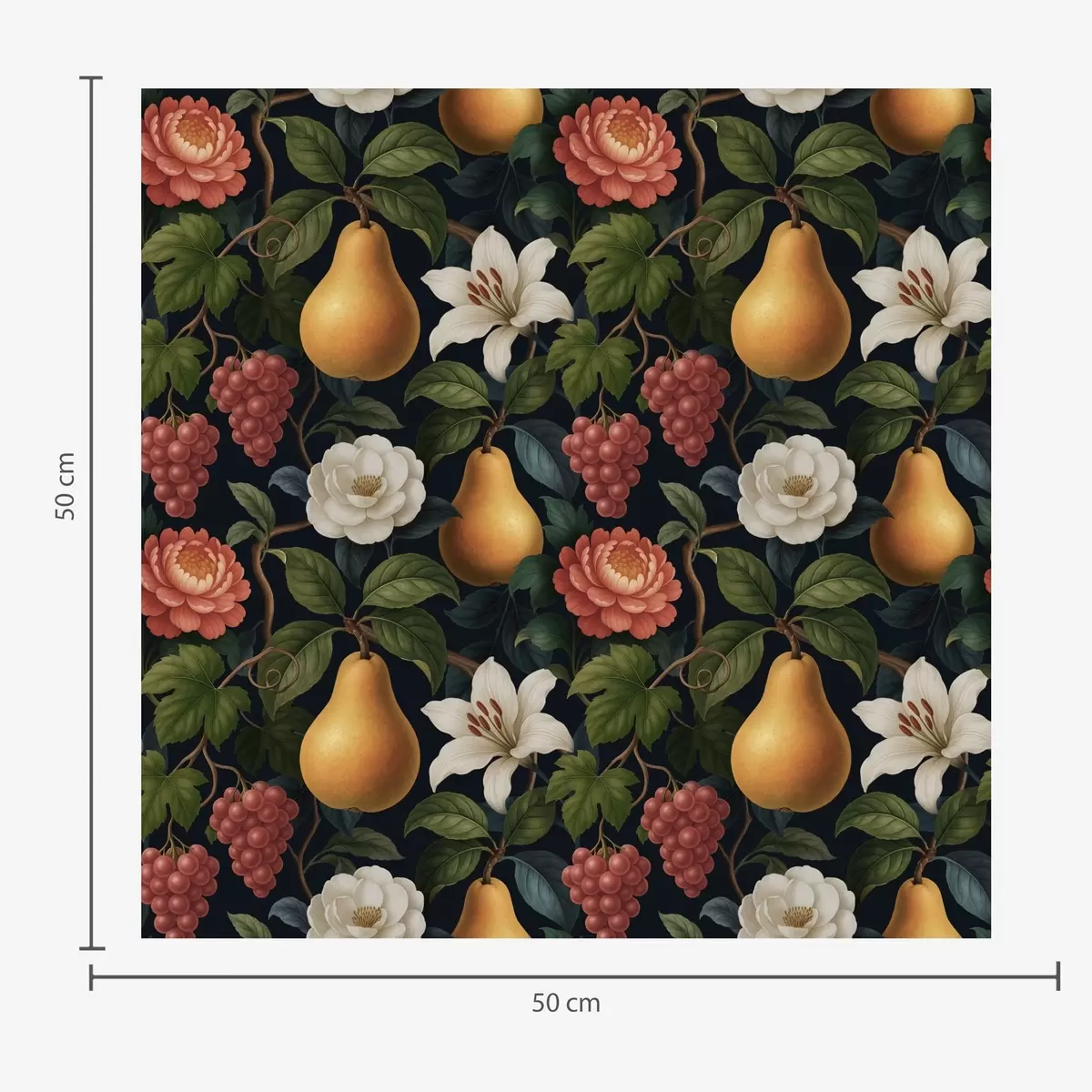 Tapet Barokke frukter og blomster på en dramatisk, mørk bakgrunn Nr. a00387