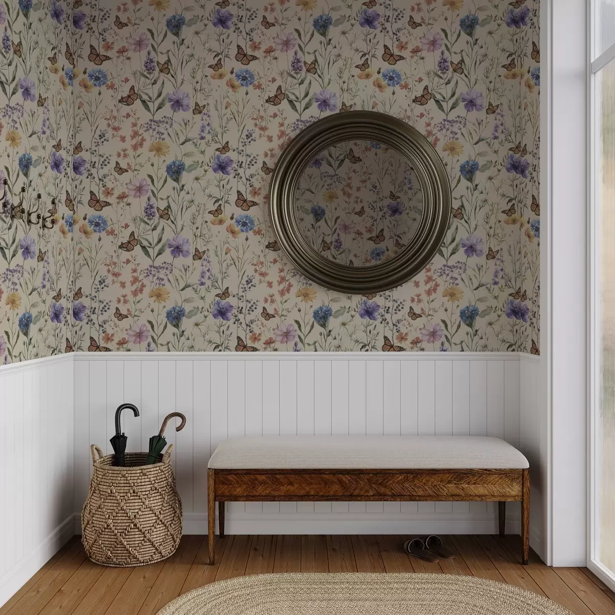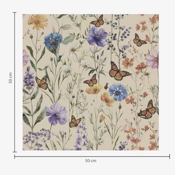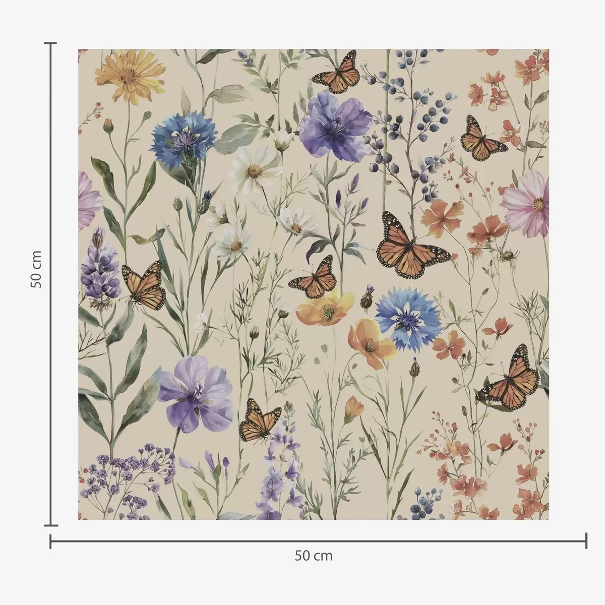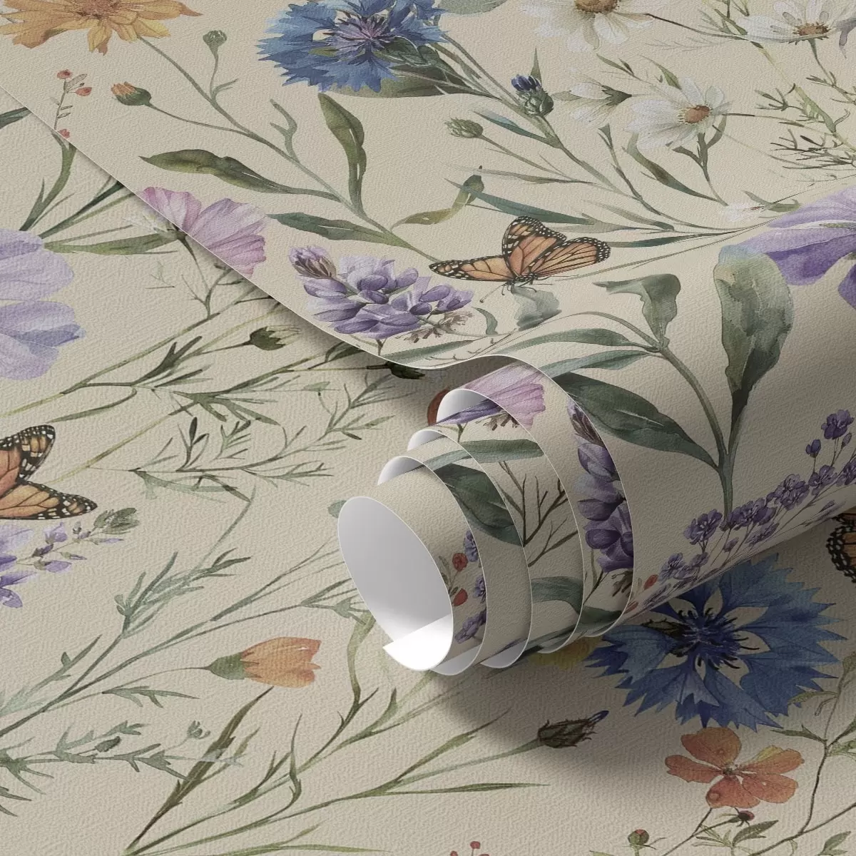 Tapet Villblomster og sommerfugler i myk akvarellstil Nr. a00389