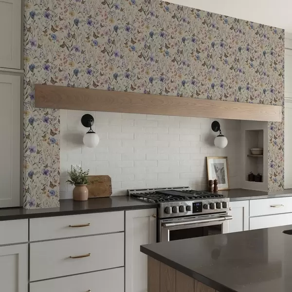 Tapet Villblomster og sommerfugler i myk akvarellstil Nr. a00389