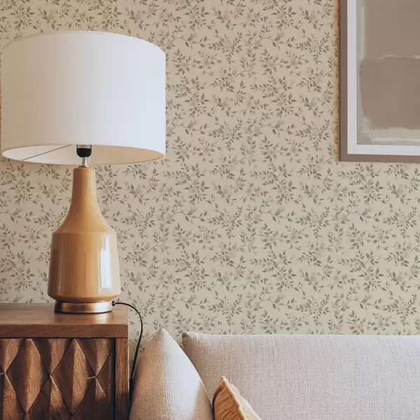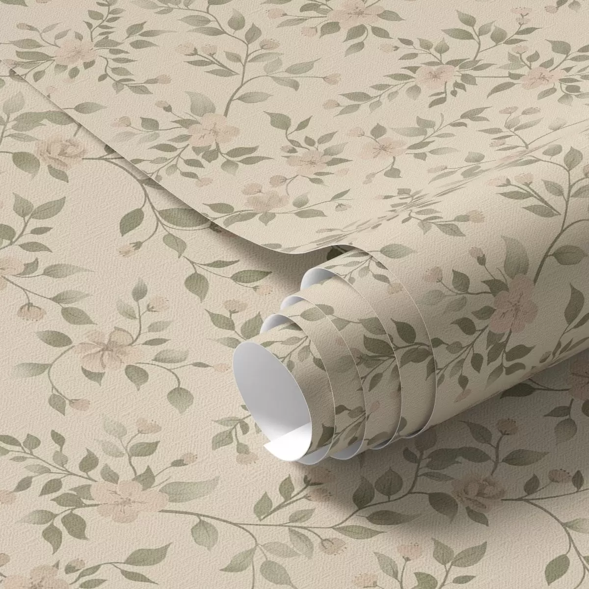 Tapet Delikate pastellfargede blomstergrener på beige bakgrunn Nr. a00390