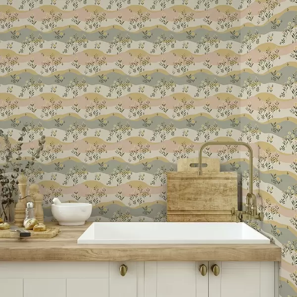 Tapet Bølgende engblomster i pastellfarget minimalistisk stil Nr. a00396