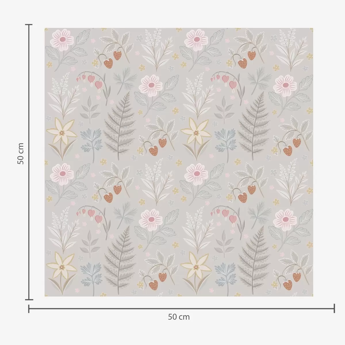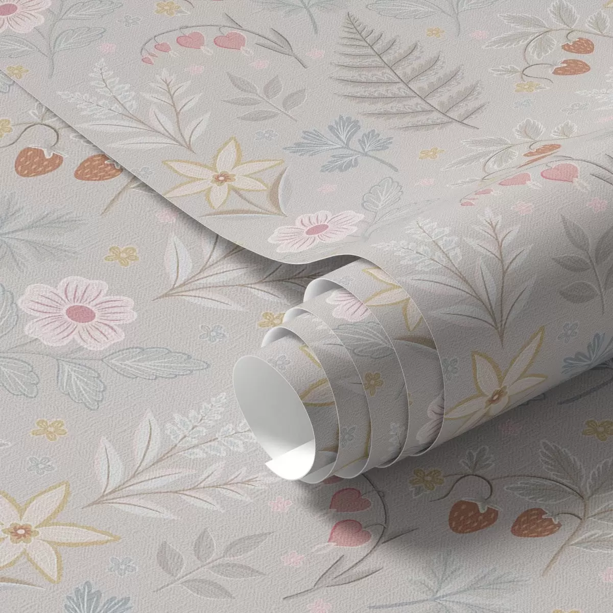 Tapet Pastellfargede blomster og bær på en lysegrå bakgrunn Nr. a00406