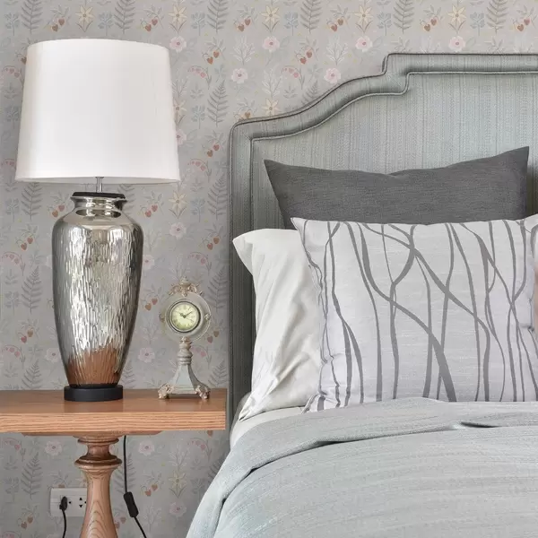 Tapet Pastellfargede blomster og bær på en lysegrå bakgrunn Nr. a00406