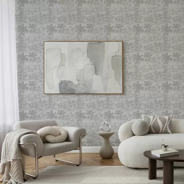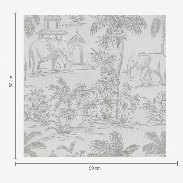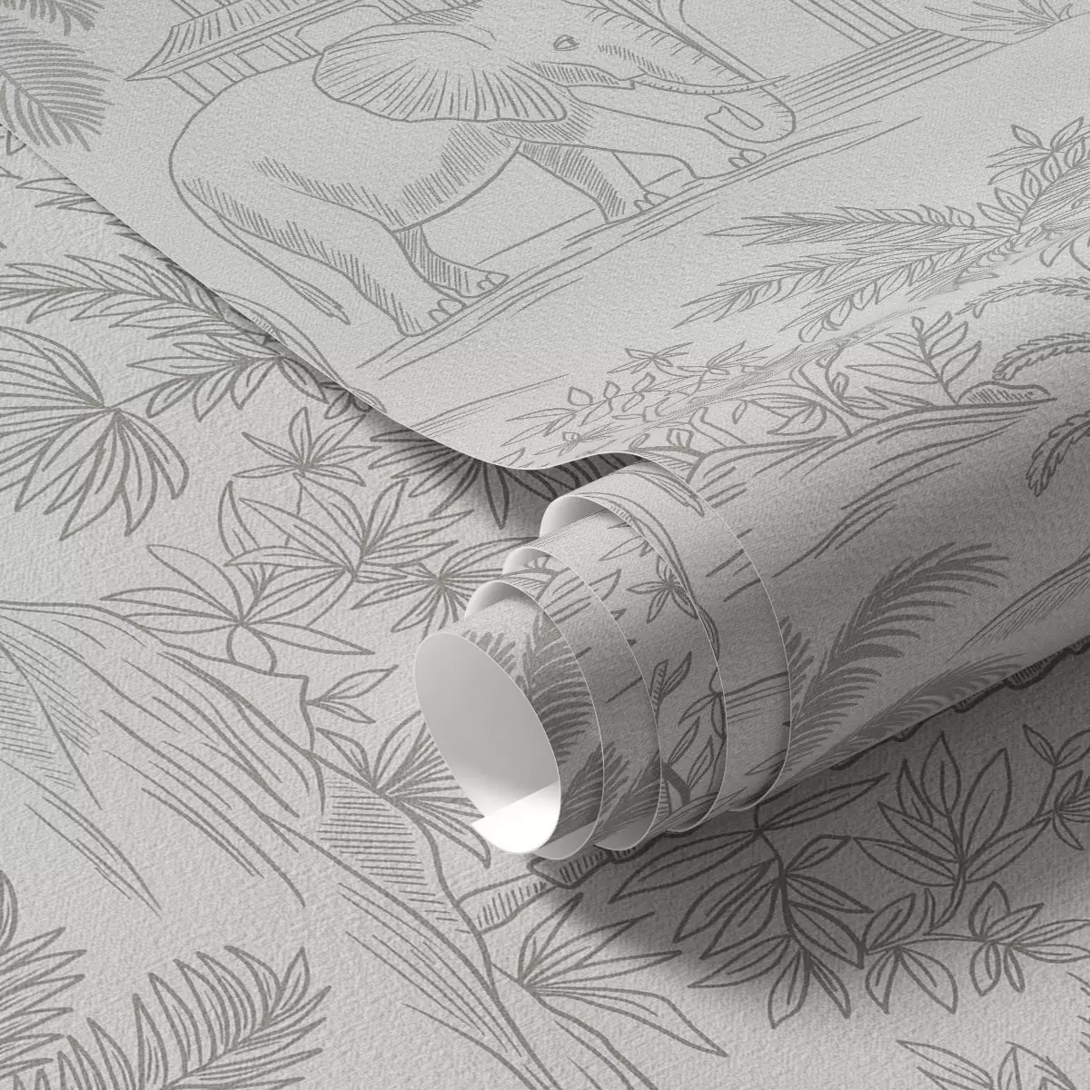 Tapet Monokrome elefanter og jungel i grafisk stil Nr. a00410