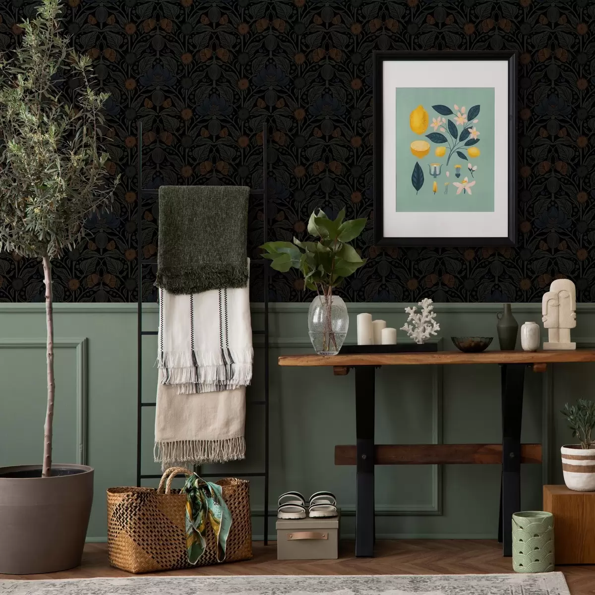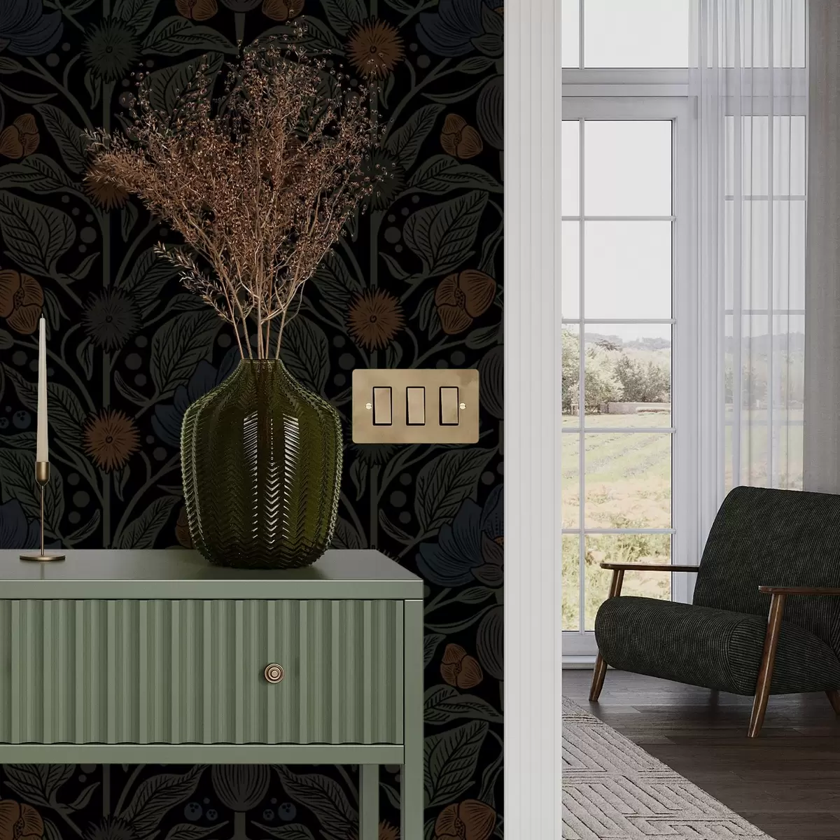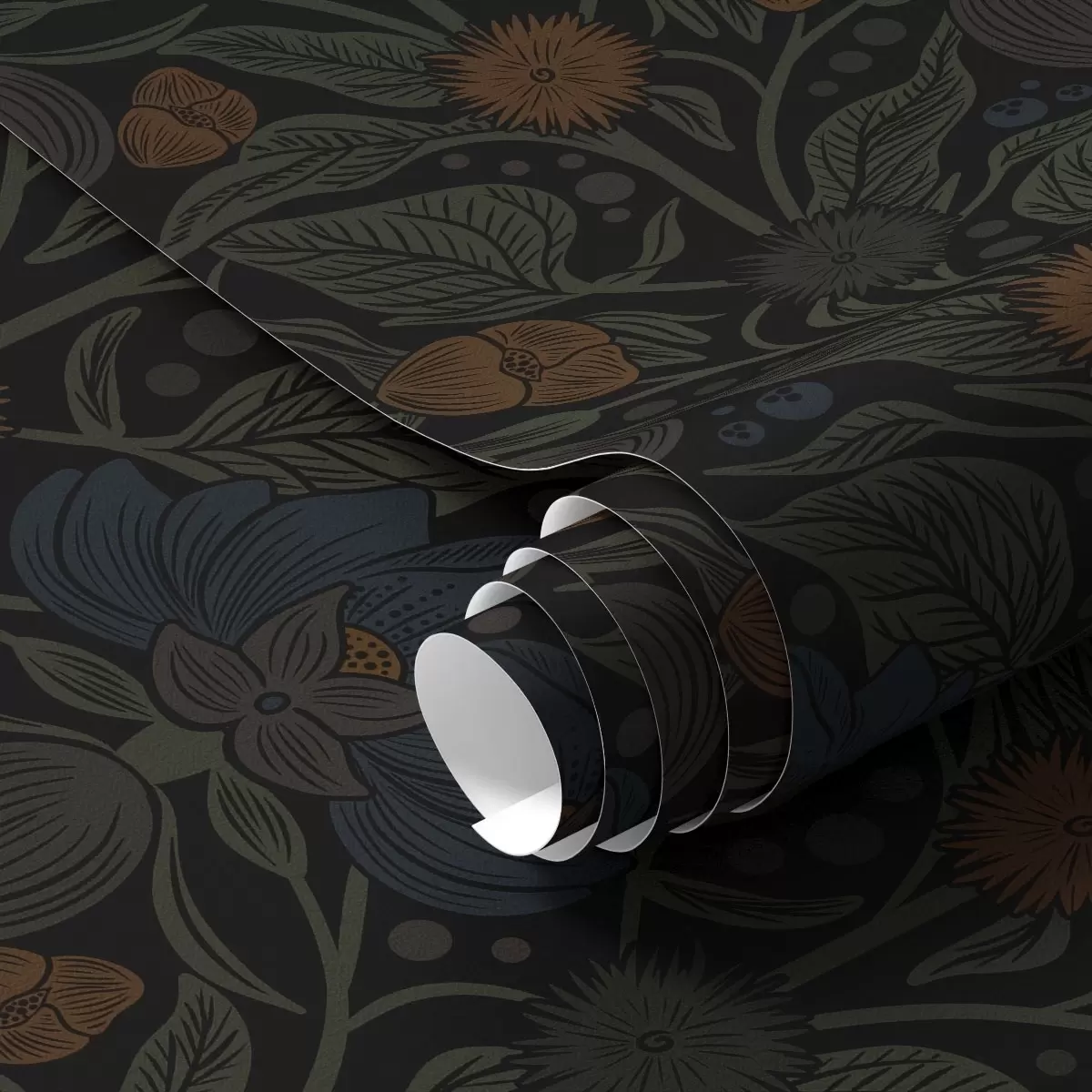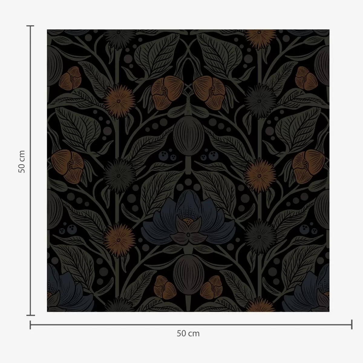 Tapet Mørkt blomsterornament med oransje aksenter Nr. a00411