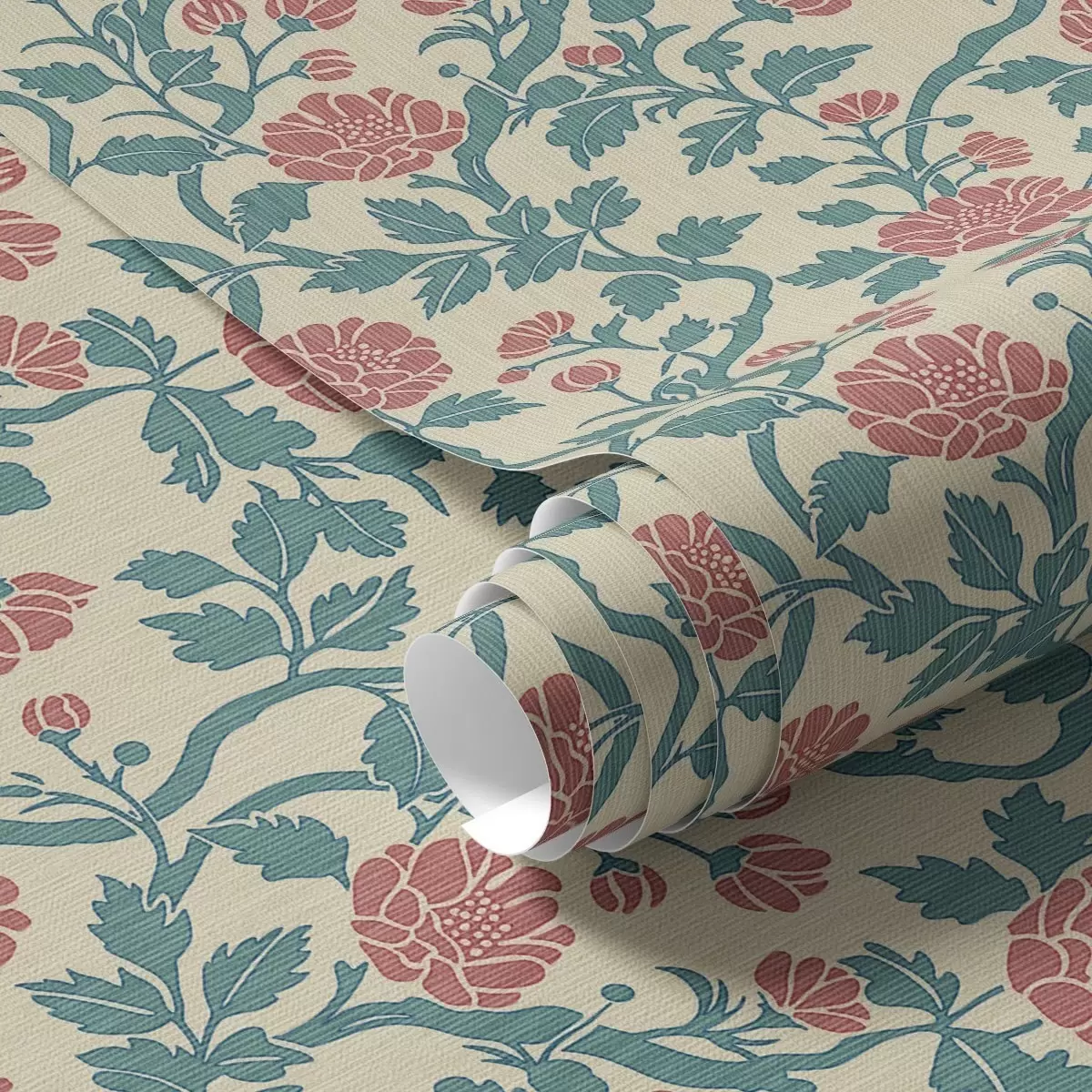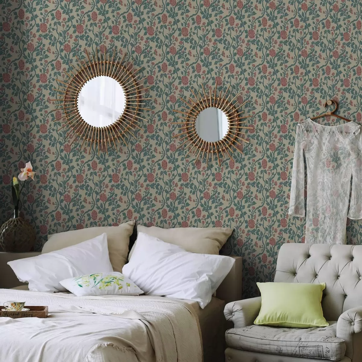 Tapet Rosa blomster på beige bakgrunn Nr. a00414