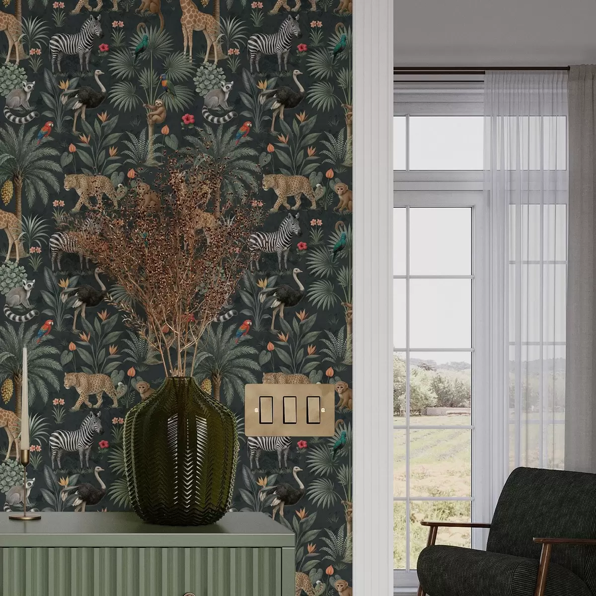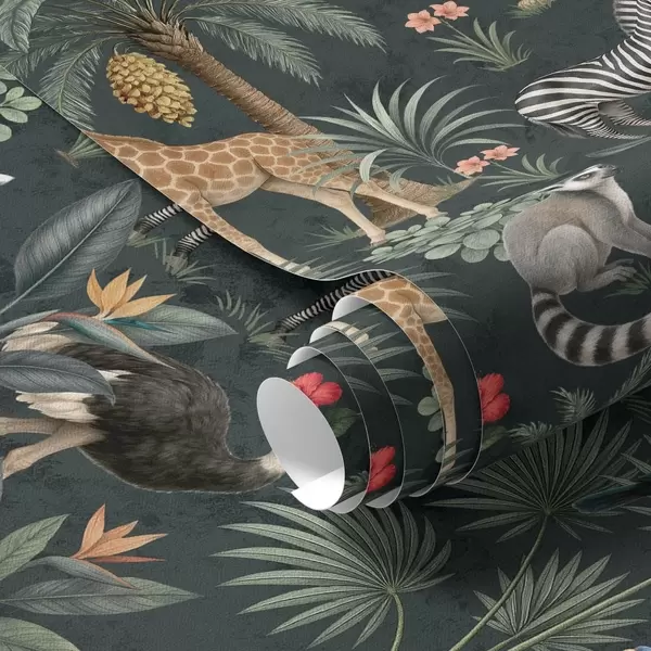 Tapet Realistiske tropiske dyr blant planter Nr. a00427