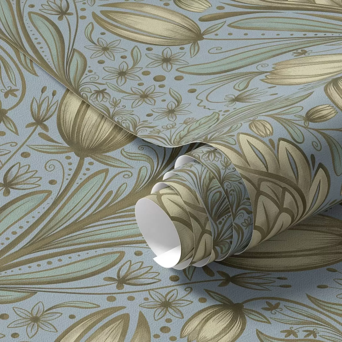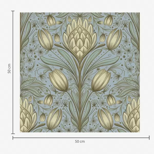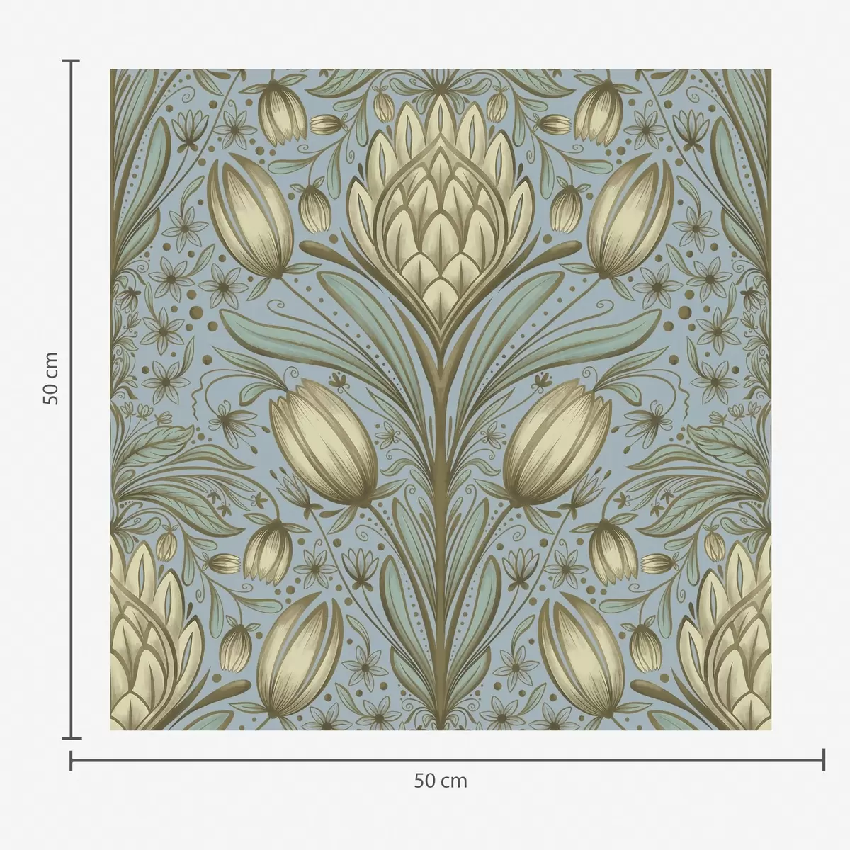 Tapet Blått mønster med artisjokker og tulipaner Nr. a00435