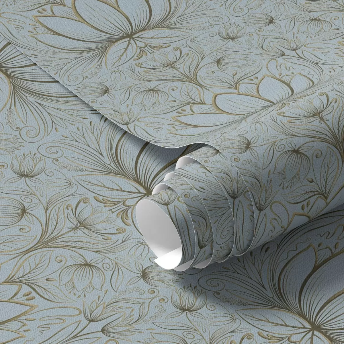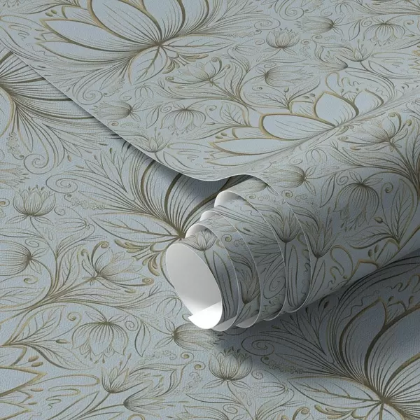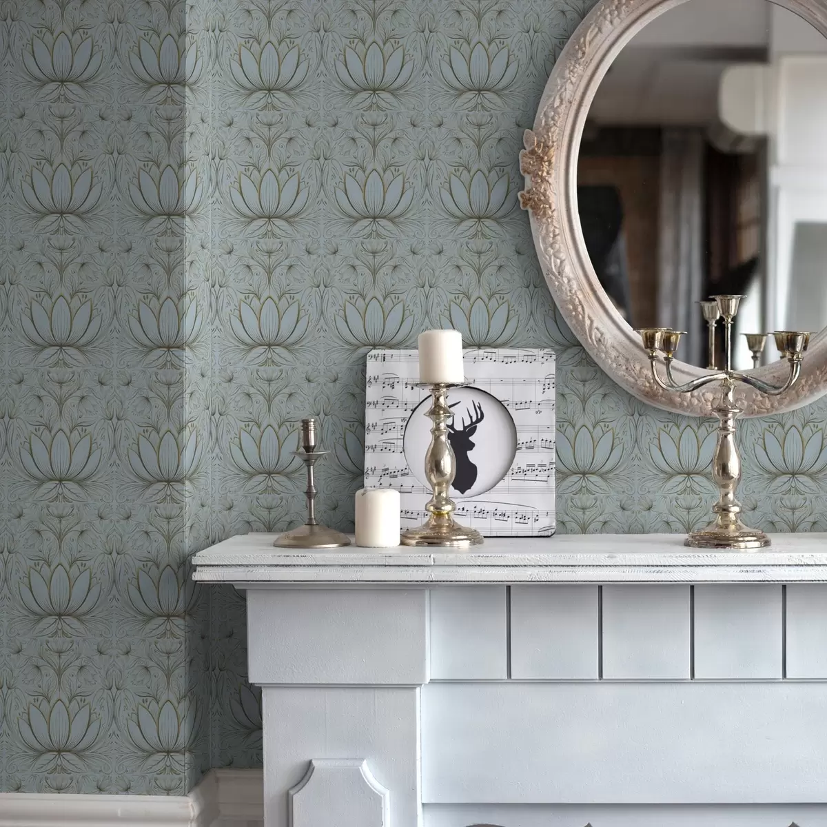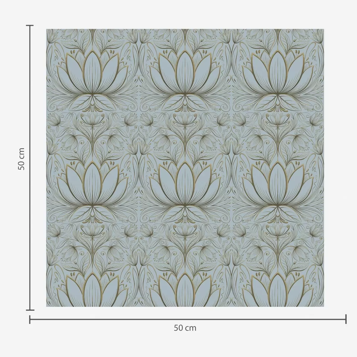 Tapet Lotusornament i turkis og gul fargepalett Nr. a00439