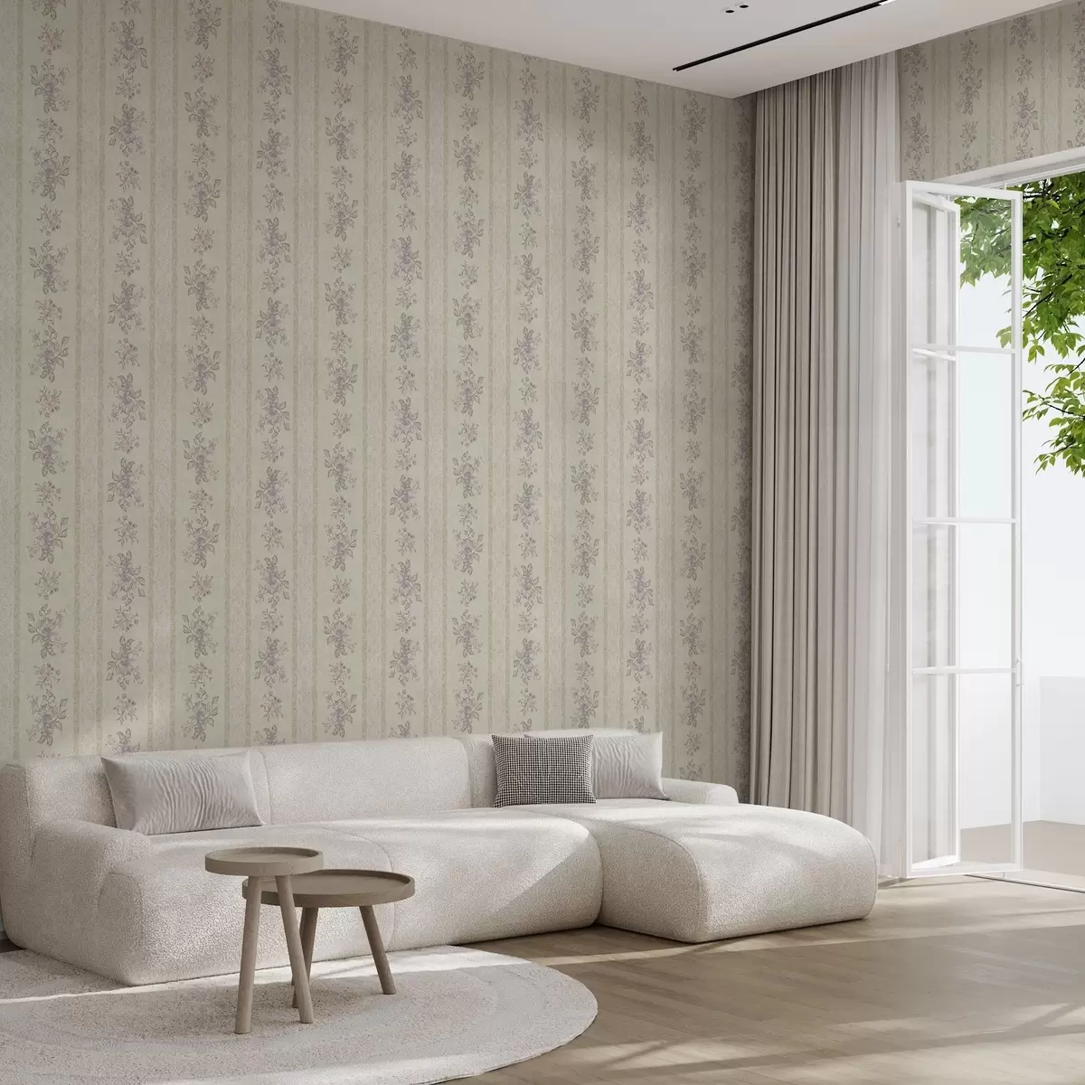 Tapet Vintageblomster på stripete bakgrunn med ornament Nr. a00440