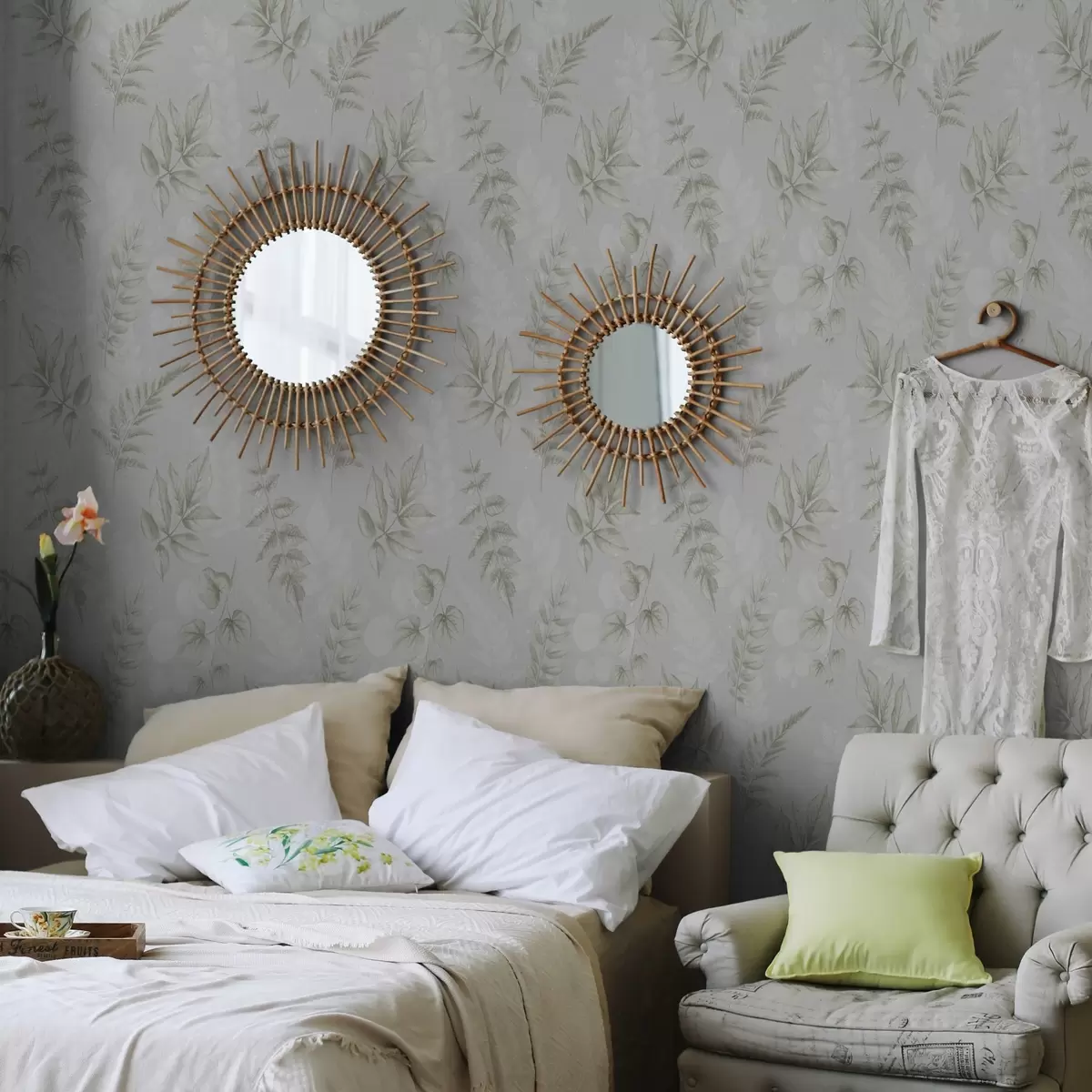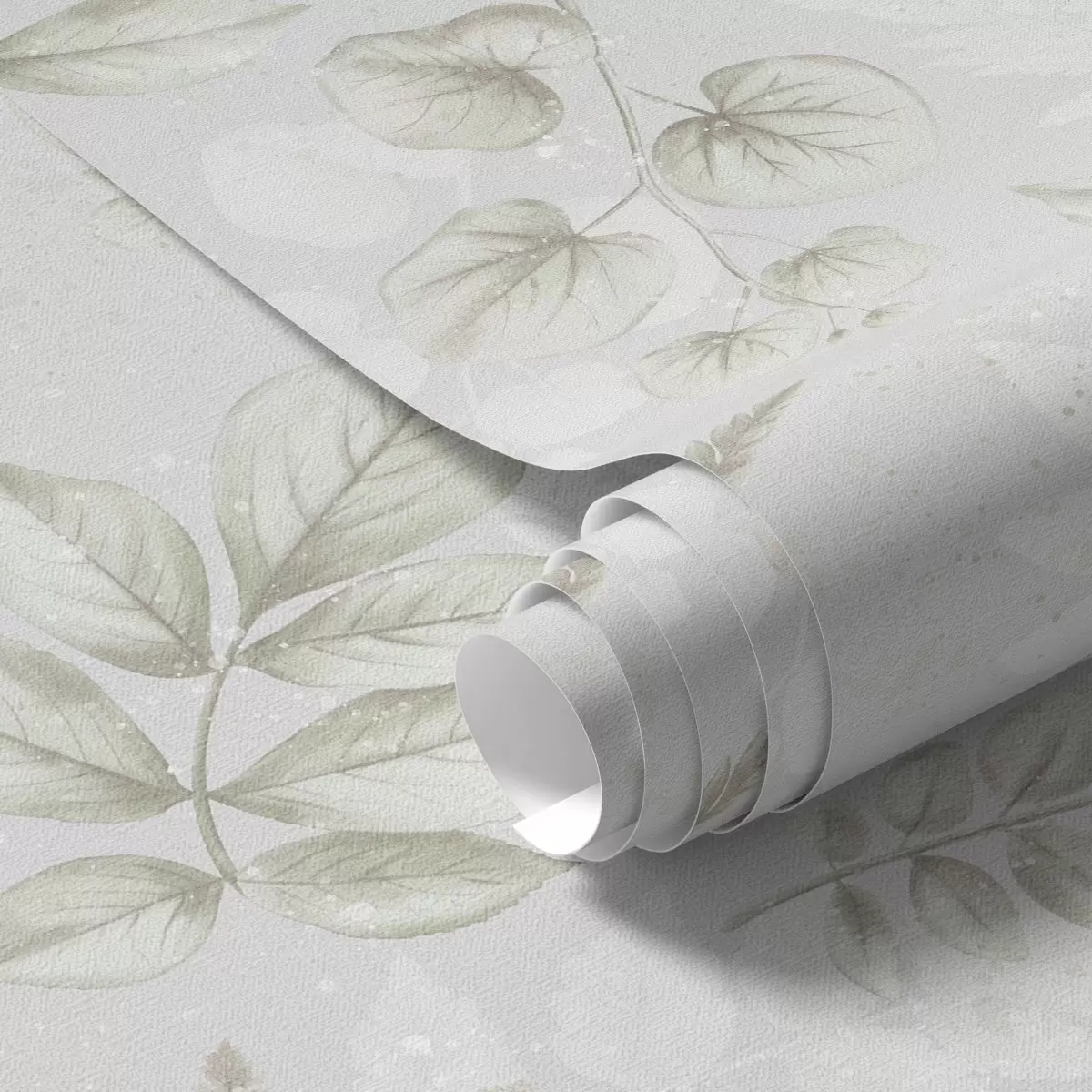 Tapet Lette akvarellblader med spruteffekt på grå bakgrunn Nr. a00446